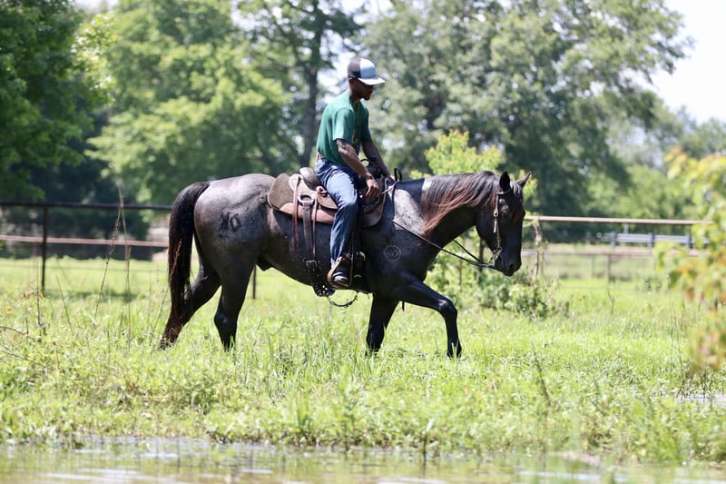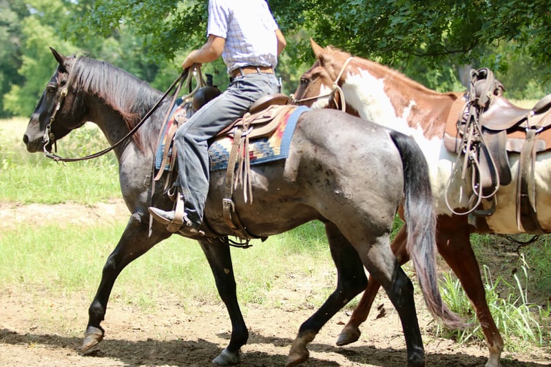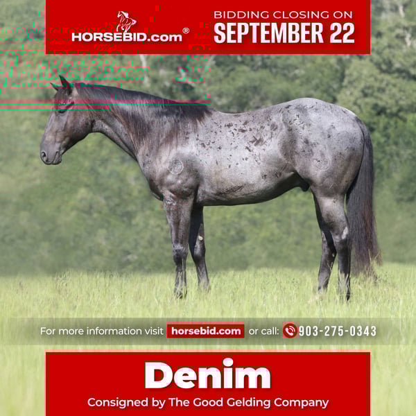 🍁𝒕𝒉𝒆 𝐅𝐀𝐋𝐋 𝑺𝒑𝒆𝒄𝒕𝒂𝒄𝒖𝒍𝒂𝒓🍁 Happening now thru MONDAY | SEPTEMBER 22nd - Available EXCLUSIVELY on HorseBid's website! For more details and to register visit: www.Horsebid.com CONSIGNOR CONTACT: The Good Gelding Company 903-275-0343 LOCATION: Athens, TX BREED: Quarter Horse REGISTERED: Yes REGISTERED NAME: RS Denim COLOR: Blue Roan HEIGHT: 15.2 AGE: 10 GENDER: Gelding Looking for a horse with substance, experience, and color? Denim is the kind that doesn’t come along every day. At 10 years old and standing 15.2 hands, this big-boned, well-made gelding is built to last, with solid dark feet and a strong frame that handles a full day’s work with ease. His striking blue roan color is the icing on the cake. Denim has a solid background as a ranch gelding. He’s been used extensively to gather cattle, check fences, and put in long days in rough country. Surefooted and steady, he handles varied terrain with confidence and never quits before you do. He’s also been used to pony and start colts, showing his quiet confidence, strength, and willingness to help get a younger horse going the right way. Denim has the kind of mind and patience that make him a steady partner, whether you’re teaching a green horse or handling a big job. Not just limited to the ranch, Denim has also been ridden in town, where he takes traffic, noise, and commotion in stride. He’s calm, cool, and collected no matter the setting—whether it’s city streets, trails, or wide-open pasture. With a smooth walk, trot, and lope, he’s also very comfortable to ride. Whether you’re needing a seasoned ranch partner, a safe and steady trail mount, or a handy gelding that can work young horses while looking good doing it, Denim is the whole package.