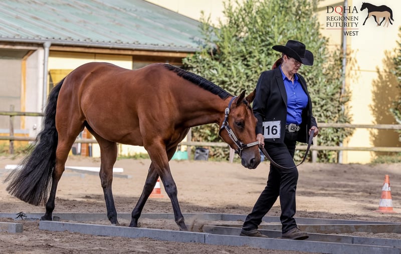 11 jähriger Quarterhorse Wallach 158 cm, rangniedrig Solide Grundausbildung , Turniererfahrung , liebt Ausritte. Happy wird verkauft an eine erfahrene, leichte Westernreiterin, die ihm gerne regelmäßig reitet oder Bodenarbeit macht und Lust auf Ausritte , Kurse oder kleinere Turniere hat. Er wird unter Wert verkauft , da er eine anatomisch bedingte Patellafixation hat, die aber durch den richtigen Beschlag, regelmäßiges Training und einer bewegungsorientierten Haltung (auch im Winter) sehr gut im Griff ist. Er ist voll reitbar. Aktuelles Reitvideo auf Anfrage . Weitere Infos telefonisch unter 0172 1824165