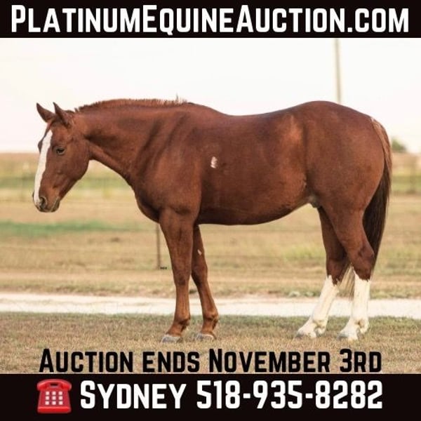 ONLINE AUCTION Place your bids at www.PlatinumEquineAuction.com Starting Bid $3500 Auction ends November 3rd, 2024 Need a new saddle? Check out White Rock Saddles on our website or Facebook! TR Flashy Cat aka “Smarty” is a Sorrel 2014 AQHA Registered gelding that stands at 14.2 hands. Smarty is an own son of TR Dual Rey with other incredible horses on his papers like Smart Little Lena and High Brow Cat. This adorable gelding certainly fulfills his name and is very well rounded. He has been used as a Breakaway and Heel Horse in recent years but has potential to do so many more disciplines such as Ranch Sorting, Team Penning, Barrels, Poles, and other speed events, as well as other cow work type competitions such as SHOT shows! He’d make an awesome trail and/or ranch horse as well if you’re not looking to compete and just want a solid riding partner. Smarty has a big kind eye and a personality that will make you fall in love with him! He’s kind, honest, and so willing you can ask this guy to do almost anything and he’ll just put his head down and work like a soldier for you. Smarty is very soft in the bridle and rides nicely in anything from a snaffle to a bigger correction bridle. He neck reins nicely or if you prefer to ride with two hands he’ll ride around just as well. He moves off leg and seat pressure which is what makes him such a great mount for so many different disciplines. Smarty stands tied nicely to be groomed, saddled and bathed. Smarty does very well riding with other horses as I’ve ponied some colts off him so he certainly won’t mind horses riding up next to him or behind him, he also rides well by himself and isn’t barn or buddy sour. Smarty is my personal favorite at my barn right now and I have so much more I could say about him. He’s athletic, he’s kind, he’s gentle, he is really the whole package that so many different types and styles of riders could enjoy. Smarty has also been recently done by my farrier and seen by my vet, and was such gentleman for both. If you’d like to know more about this handsome gelding please don’t hesitate to call or text Sydney with SRS Training and Sales 518-935-8282, I am more than happy to talk about this gelding! Smarty is located in Granbury, TX and we are happy to help with any shipment arrangements. ONLINE AUCTION Place your bids at www.PlatinumEquineAuction.com Starting Bid $3500 Auction ends November 3rd, 2024 Need a new saddle? Check out White Rock Saddles on our website or Facebook!