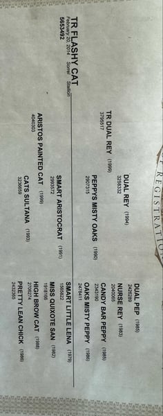 ONLINE-AUKTION Geben Sie Ihre Gebote unter www.PlatinumEquineAuction.com ab. Startgebot $3500 Die Auktion endet am 3. November 2024 Brauchen Sie einen neuen Sattel? Schauen Sie sich White Rock Saddles auf unserer Website oder Facebook an! TR Flashy Cat alias "Smarty" ist ein Sorrel 2014 AQHA registriert Wallach, der 14,2 Hände steht. Smarty ist ein eigener Sohn von TR Dual Rey mit anderen unglaublichen Pferden in seinen Papieren wie Smart Little Lena und High Brow Cat. Dieser bezaubernde Wallach macht seinem Namen alle Ehre und ist sehr gut abgerundet. Er wurde in den letzten Jahren als Breakaway- und Heel-Pferd eingesetzt, hat aber das Potenzial für viele weitere Disziplinen wie Ranch Sorting, Team Penning, Barrels, Poles und andere Speed-Events sowie für andere Cow Work-Wettbewerbe wie SHOT-Shows! Er wäre auch ein großartiges Trail- und/oder Ranch-Pferd, wenn Sie nicht an Wettkämpfen teilnehmen möchten und nur einen soliden Reitpartner suchen. Smarty hat ein großes, freundliches Auge und eine Persönlichkeit, in die Sie sich sofort verlieben werden! Er ist freundlich, ehrlich und so willig, dass Sie ihn um fast alles bitten können und er wird einfach seinen Kopf senken und wie ein Soldat für Sie arbeiten. Smarty ist sehr weich in der Zäumung und lässt sich von der Trense bis hin zu einer größeren Korrekturzäumung gut reiten. Er lässt sich gut am Halszügel reiten, und wenn Sie es vorziehen, mit zwei Händen zu reiten, lässt er sich ebenso gut herumführen. Er bewegt sich ohne Bein- und Sitzdruck, was ihn zu einem großartigen Reittier für so viele verschiedene Disziplinen macht. Smarty lässt sich gut anbinden, um gestriegelt, gesattelt und gebadet zu werden. Smarty kann sehr gut mit anderen Pferden zusammen reiten, da ich einige Fohlen von ihm geponigt habe, so dass es ihm sicher nichts ausmacht, wenn Pferde neben oder hinter ihm reiten, aber er reitet auch gut alleine und ist nicht sauer auf den Stall oder seine Freunde. Smarty ist im Moment mein persönlicher Favorit in meinem Stall und ich könnte noch so viel mehr über ihn sagen. Er ist athletisch, er ist freundlich, er ist sanft, er ist wirklich das ganze Paket, das so viele verschiedene Arten und Stile von Reitern genießen können. Smarty wurde kürzlich auch von meinem Hufschmied und meinem Tierarzt behandelt und war bei beiden ein echter Gentleman. Wenn Sie mehr über diesen hübschen Wallach wissen möchten, zögern Sie nicht, Sydney von SRS Training and Sales unter 518-935-8282 anzurufen oder eine SMS zu schreiben, ich bin gerne bereit, über diesen Wallach zu sprechen! Smarty befindet sich in Granbury, TX, und wir sind gerne bereit, Ihnen bei den Transportmodalitäten zu helfen. ONLINE-AUKTION Geben Sie Ihre Gebote unter www.PlatinumEquineAuction.com ab. Startgebot $3500 Die Auktion endet am 3. November 2024 Brauchen Sie einen neuen Sattel? Schauen Sie sich White Rock Saddles auf unserer Website oder Facebook an!