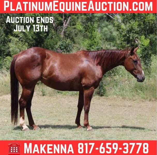 NLINE AUCTION Place your bids at www.PlatinumEquineAuction.com Starting Bid $3500 Auction ends July 13th 2025 Need a new saddle? Check out White Rock Saddles on our website or Facebook How about this gorgeous gal? Rockin W Barbie Girl aka Tina is a great all around fun mare to have in the barn! She is 11 years old and stands 14.2hh tall! Tina is very handy broke, has a nice turn around, big stop and super light in the face! She moves off your legs and lopes around smooth as butter right out of her tracks. Tina is ready to haul on both the heel side and in the breakaway! She is easy as they come and is a point and go mare. She’s been day worked on a bunch and has plenty of run as well. T has been through the barrels, used as a turn back horse and has been to countless sortings. She will carry flags, is good in traffic and on roads/highways. We hauled her to the famous Fort Worth Stockyards to ride her through the busy day downtown there and she didn’t ever have a care in the world, was just happy to be there! IRE: ROCKIN W (2006). $329,722: NCHA Open Futurity Champion; top 10 NCHA Open Derby; 4th NCHA Limited Open Futurity; split 3rd Brazos Bash Open Derby; finalist NCHA Open Classic/Challenge. Full brother to RW ROCKIN ($202,578: Breeders Inv. Open Derby Reserve Champion); half-brother to BOON SAN SPOON ($171,207: NCHA Open Classic/Challenge Champion), THE BOON ($76,156: NCHA Open Classic/Challenge Co-Reserve Champion). Out of BOON SAN KITTY ($565,504: NCHA Horse of the Year [shared], NCHA Hall of Fame). Sire of 68 money-earners, including ROCKIN SALLYCAT ($125,033: split 3rd NCHA Open Futurity), ROCKIN KW ($109,695: Arbuckle Mountain Open Derby Co-Reserve Champion), ROCKIN HISTORY ($100,000: Road to the Horse 3-Year-Old Challenge Champion), ROCKIN A LIL ($52,261: Barrel Racing Daze Futurity 1D Champion), SMART ALICE LOUISE ($47,717: finalist NCHA Open Futurity), ONE GOOD LOOKIN BABE ($47,652: split 6th NCHA Non-Pro Futurity), SHESMISSCONGENIALITY ($44,434: finalist NCHA Non-Pro Futurity), ROCKIN CAT MORIA RG ($36,610: top 10 NCHA Non-Pro Super Stakes), PATTIE ROCKS ($23,299: finalist Breeders Inv. Open Derby), ROCKIN HANGEM HIGH ($16,307: finalist NCHA $100,000 Amateur Futurity), ROCKIN ECLIPSE ($16,258: 3rd Congress Open Derby). DAM: DMAC BARBIE GIRL (2006). A daughter of HES A PEPTOSPOONFUL, $72,851: top 10, NCHA Open Futurity; Suncoast Winter Cutting Non-Pro Derby Champion. A 2017 AQHA Top 10 Sire of Cutting Point-Earners; 2017 AQHA Top 25 Sire of Cowboy Events Point-Earners; A QData Top 25 All-Time Sire of Cutting Money-Earners. Sire of 432 money-earners, $8,017,772, earners of 2,763 AQHA points, including CHERRY CHEX DUALLY ($251,103: Abilene Spectacular Open Derby Champion), SPOONFULLA CAT ($247,426: finalist NCHA Open Futurity; NCHA Silver Award), SPOONFUL OF CHEERIOS ($238,267: 3rd NCHA Open Futurity), THE SILVER SPOON ($238,235: 4th NCHA Open Futurity), LITTLE SILVER BELLES ($201,763: Cotton Stakes Open Derby Champion), A SPOONFUL OF STYLE ($195,270: split 6th NCHA Non-Pro Classic/Challenge; NCHA Bronze Award), BOON SAN SPOON ($171,207: NCHA Open Classic/Challenge Champion), CROSSING RED RIVER ($158,608: NCHA $5,000 Novice Horse Non-Pro World Champion), DMAC SPICY SPOON ($156,149: 5th NCHA Open Super Stakes), HES A HEAPINSPOONFUL ($146,247: split 6th NCHA Super Stakes Non-Pro Classic), PLAYIN WITH A SPOON ($144,698: 6th NCHA Non-Pro Futurity), SPORK ($135,206: NCHA Non-Pro Super Stakes Reserve Champion), SHESA DIRTY MARTINI ($133,111: 3rd NCHA Open Super Stakes), SHES FUL OF DIAMONDS ($122,399: NRCHA Open Futurity Reserve Champion), PRF SPOONFUL OF GOLD ($111,465 and 70 AQHA points: NRCHA Open Derby Reserve Champion), ECHOS FROM THE PAST ($104,678: top 10 NCHA Open Derby), A COPPER SPOONFUL ($104,048: NCHA $50,000 Amateur Co-World Champion; NCHA Bronze Award All an all, you can put absolutely anyone on this mare to do absolutely anything! With her breeding, that speaks volume! Tina is turned out with other mares and geldings, low on the pecking order and gets along with everyone. She also does very good stalled and eats and drinks well on the road. She stands to be saddled, stands good for the farrier and vet, and is easy to catch! She is UTD on everything and just had his teeth done. Tina is a clean slate ready for anyone to use! 11 yrs old 14.2 gentle sound conformationally correct ready to haul both heeling and break away located in Lipan, Texas For more information or any questions contact MaKenna Hartzell call or text 817-659-3778. ONLINE AUCTION Place your bids at www.PlatinumEquineAuction.com Starting Bid $3500 Auction ends July 13th 2025 Need a new saddle? Check out White Rock Saddles on our website or Facebook