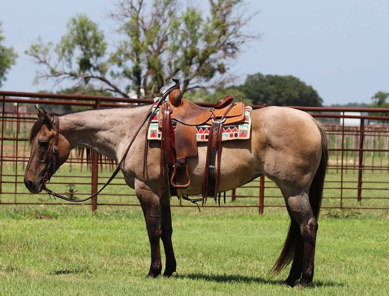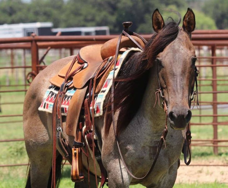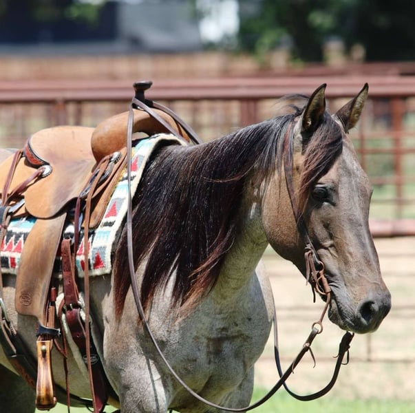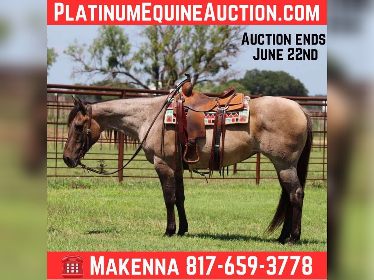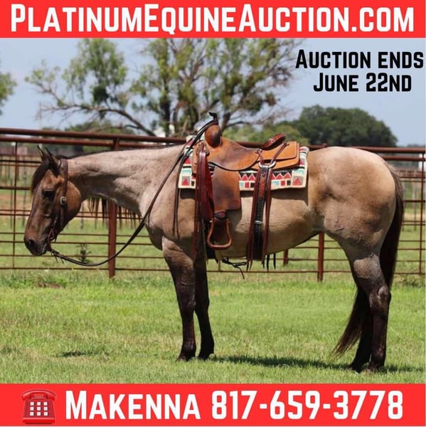 ONLINE AUCTION Place your bids at www.PlatinumEquineAuction.com Starting Bid $3500 Auction ends June 22nd, 2025 Need a new saddle? Check out White Rock Saddles on our website or Facebook! How about this gorgeous gal? Gemma is a great trail horse, and just an all around fun mare to have in the barn! She is 11 years old, grade and 14.3hh tall! Gemma is very handy broke, has a nice turn around, big stop and super light in the face! She moves off your legs and lopes around smooth as butter right out of her tracks. She will carry flags, is good in traffic and on roads/highways. We hauled her to the famous Fort Worth Stockyards to ride her through the busy day downtown there and she didn’t ever have a care in the world, was just happy to be there! Gem is turned out with other mares and geldings, low on the pecking order and gets along with everyone. She also does very good stalled and eats and drinks well on the road. She stands to be saddled, stands good for the farrier and vet, and is easy to catch! She is UTD on everything and just had his teeth done. Gemma is a clean slate ready for anyone to use! We are located in Lipan, TX and have hauling available anywhere in the U.S., Hawaii or Canada! Don’t miss out on the gorgeous grulla roan mare! Please call or text Makenna Hartzell 817-659-3778. ONLINE AUCTION Place your bids at www.PlatinumEquineAuction.com Starting Bid $3500 Auction ends June 22nd, 2025 Need a new saddle? Check out White Rock Saddles on our website or Facebook!