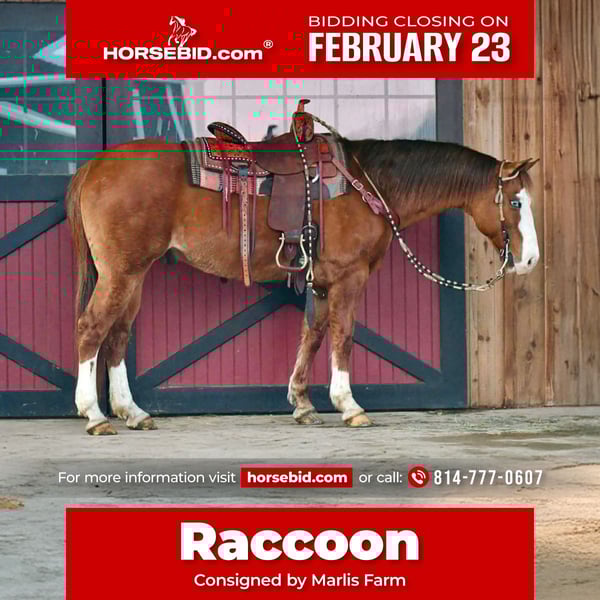 💎 𝐓𝐇𝐄 𝓓𝓲𝓪𝓶𝓸𝓷𝓭 𝐒𝐇𝐎𝐖𝐂𝐀𝐒𝐄 💎 Happening now thru MONDAY | FEBRUARY 23rd - Available EXCLUSIVELY on HorseBid's website! For more details and to register visit: www.Horsebid.com CONSIGNOR CONTACT: Marlis Farm 814-777-0607 LOCATION: Rebersburg. PA BREED: Quarter Horse REGISTERED: No REGISTERED NAME: Racoon COLOR: Red Dun HEIGHT: 14.3 AGE: 12 GENDER: Gelding If you are looking for something gentle, pretty, and well broke, take a look at this gelding we call Racoon. Racoon is a 12 Yr Old 14.3 HH Red Dun Quarter Horse Gelding. He is well broke to ride. He neck reins, side passes, and has a good stop. We used Racoon on miles of trails up in the mountains and he goes wherever you point him with no hesitation. We have also taken him down the main highway into town and he does not mind all the traffic and commotion. He rides great in the arena, picks up both leads, and has a smooth walk, trot and canter. He also rides English and is fancy doing it. He is gentle enough for my boys to ride and play around with. He is quiet to be around and loves attention. He does well inside or turned out in a mix herd. He rides the same every day whether you ride him every day or once a month. He stands to be tacked, mounted, washed, and for the farrier. He is sane, safe, and ready to move into his forever home. For more information, Call Mark 814-777-0607. Calls Only. We can help arrange shipping anywhere!!