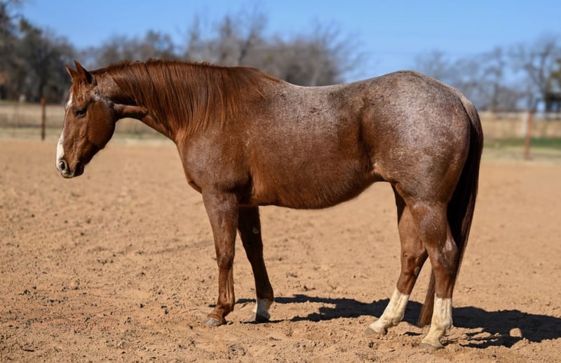 Pretty Boy, caballo castrado de 12 años, 14.3 manos, color roan rojo, de raza AQHA.