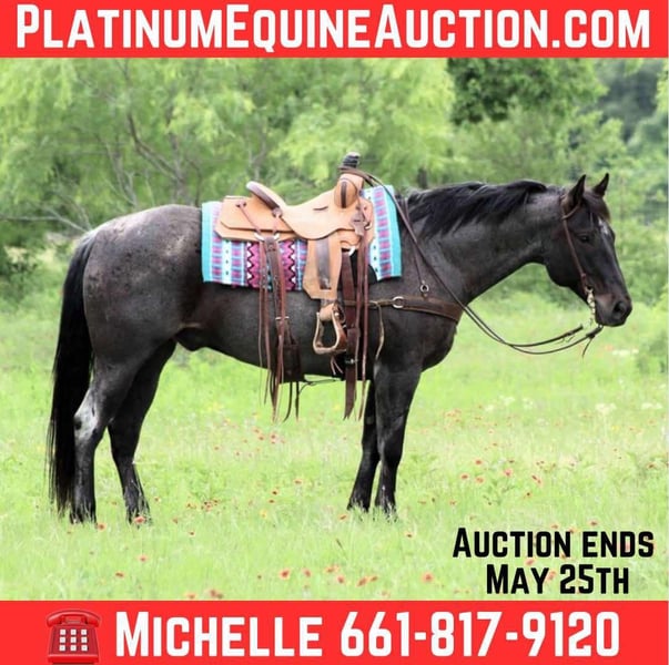 ONLINE AUCTION Place your bids at www.PlatinumEquineAuction.com Starting Bid $3500 Auction ends May 25th, 2025 Need a new saddle? Check out White Rock Saddles on our website or Facebook! Lena is an 11 year old grade grey mare standing 14.3hh & is just as talented as she is beautiful! This sweet lady has been used all over! She is outstanding in the arena; neck reins like a champ, walk, trots, & lopes both ways and is truly just a gentle hearted mare. She has also been used as a kids lesson horse, she’s been rode in town several times, and in lots of gymkhanas and rodeos! She has also been used extensively to help doctor, and do every day ranch chores. She is very user friendly. Lena and I have spent countless hours in the mountains as well, going through all kinds of terrain. We’ve rock pounded for miles, crossed several rushing streams, fallen logs, broken fences, and steep hills time & time again & she is consistent every time. Whatever I could imagine, she’s taken me there safely! She stands wonderfully for baths, shoeing, tacking, grooming & even loads without hesitation. Absolutely no buck, bite, rear or bolt. She is also a dream for the farrier. She comes with a clean health certificate and coggins! I can help assist arranging transport to anywhere is the US! Don’t hesitate to call or text with any questions Jenna Edwards 864-985-9589 Located in Cottonwood, AZ. ONLINE AUCTION Place your bids at www.PlatinumEquineAuction.com Starting Bid $3500 Auction ends May 25th, 2025 Need a new saddle? Check out White Rock Saddles on our website or Facebook!