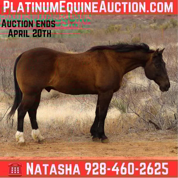 ONLINE AUCTION Place your bids at www.PlatinumEquineAuction.com Starting Bid $3500 Auction ends April 20th, 2025 Need a new saddle? Check out White Rock Saddles on our website or Facebook! Crockett is a grade 11 year old gelding standing 15hh and absolutely stout!!! Crockett is absolutely as wide as he is tall! This stout made, dense boned, rock footed gelding is big enough for absolutely anybody to ride! We have used Crockett for absolutely every job around the ranch making him surefooted and exposed to a wide variety of things! Drug calves to the fire, doctored yearlings, sorted pens, loaded trucks, worked gates, and rode miles and miles of fence. Crockett will go absolutely anywhere you point him no matter what kind of country you’re in. Steep rocky terrain, thick brush, fallen logs, vast flowing rivers, or even the busy streets of town! Crockett is not only great to use outside, he’s an absolute blast in the arena as well! Crockett will walk, trot, and lope both ways with ease as well as side-pass, neck rein, and has a great stop! Crockett is easy to catch and good to groom, saddle, bridle, bathe, shoe, and load! Crockett is very broke, versatile, and has a big motor. Will come with a clean coggins and health!!! Transport can easily be arranged anywhere in the US!!! Located in Camp Verde, AZ. Contact D/C Equine Services Dallas 804-822-2233 Natasha 928-460-2625Crockett is a grade 11 year old gelding standing 15hh and absolutely stout!!! Crockett is absolutely as wide as he is tall! This stout made, dense boned, rock footed gelding is big enough for absolutely anybody to ride! We have used Crockett for absolutely every job around the ranch making him surefooted and exposed to a wide variety of things! Drug calves to the fire, doctored yearlings, sorted pens, loaded trucks, worked gates, and rode miles and miles of fence. Crockett will go absolutely anywhere you point him no matter what kind of country you’re in. Steep rocky terrain, thick brush, fallen logs, vast flowing rivers, or even the busy streets of town! Crockett is not only great to use outside, he’s an absolute blast in the arena as well! Crockett will walk, trot, and lope both ways with ease as well as side-pass, neck rein, and has a great stop! Crockett is easy to catch and good to groom, saddle, bridle, bathe, shoe, and load! Crockett is very broke, versatile, and has a big motor. Will come with a clean coggins and health!!! Transport can easily be arranged anywhere in the US!!! Located in Camp Verde, AZ. Contact D/C Equine Services Dallas 804-822-2233 Natasha 928-460-2625 Crockett is a grade 11 year old gelding standing 15hh and absolutely stout!!! Crockett is absolutely as wide as he is tall! This stout made, dense boned, rock footed gelding is big enough for absolutely anybody to ride! We have used Crockett for absolutely every job around the ranch making him surefooted and exposed to a wide variety of things! Drug calves to the fire, doctored yearlings, sorted pens, loaded trucks, worked gates, and rode miles and miles of fence. Crockett will go absolutely anywhere you point him no matter what kind of country you’re in. Steep rocky terrain, thick brush, fallen logs, vast flowing rivers, or even the busy streets of town! Crockett is not only great to use outside, he’s an absolute blast in the arena as well! Crockett will walk, trot, and lope both ways with ease as well as side-pass, neck rein, and has a great stop! Crockett is easy to catch and good to groom, saddle, bridle, bathe, shoe, and load! Crockett is very broke, versatile, and has a big motor. Will come with a clean coggins and health!!! Transport can easily be arranged anywhere in the US!!! Located in Camp Verde, AZ. Contact D/C Equine Services Dallas 804-822-2233 Natasha 928-460-2625 ONLINE AUCTION Place your bids at www.PlatinumEquineAuction.com Starting Bid $3500 Auction ends April 20th, 2025 Need a new saddle? Check out White Rock Saddles on our website or Facebook!
