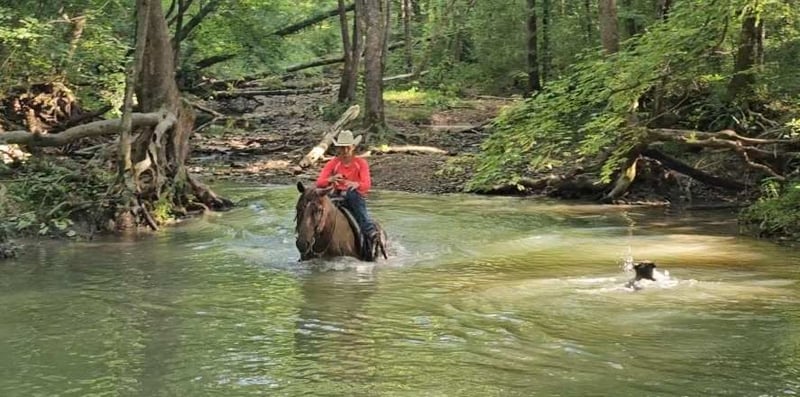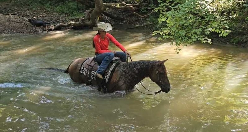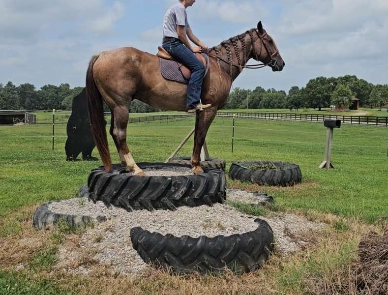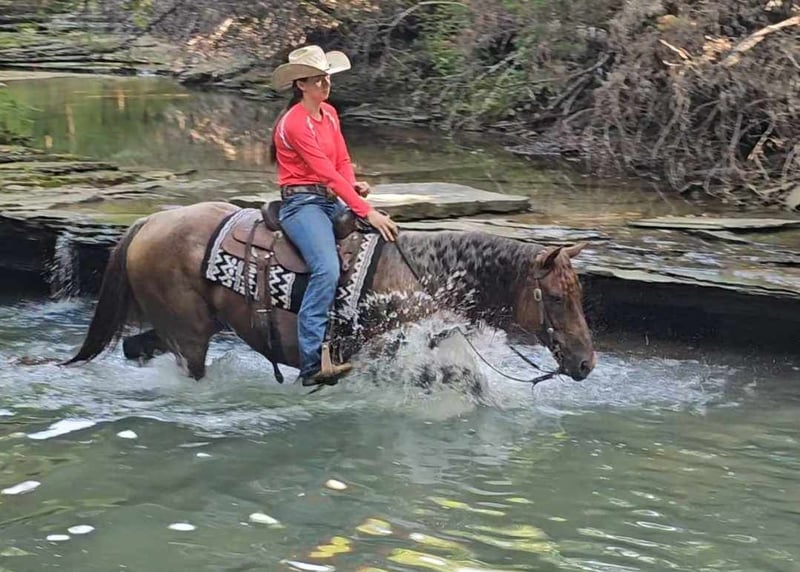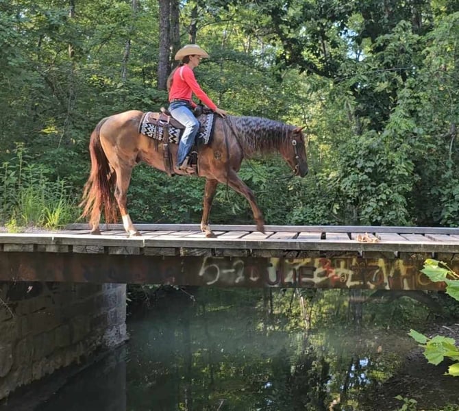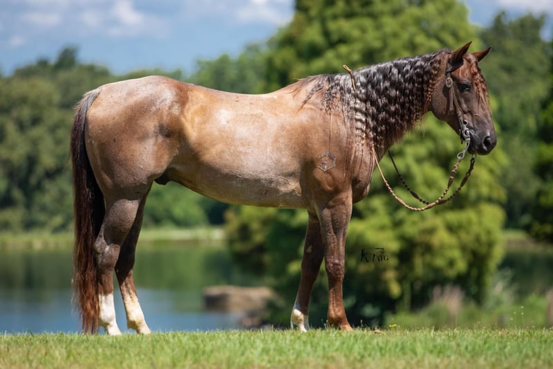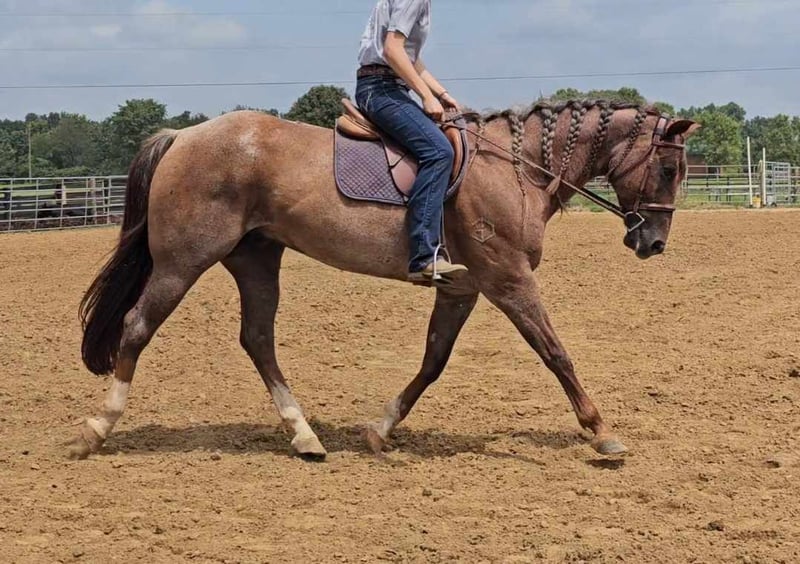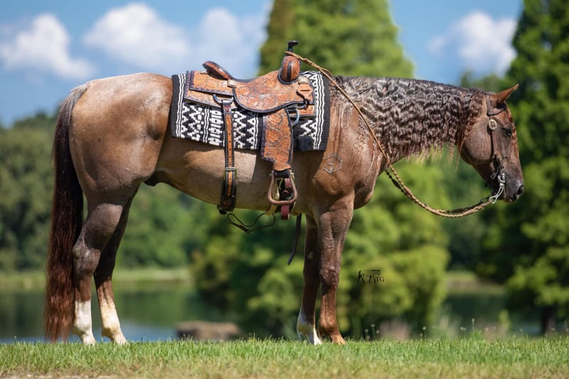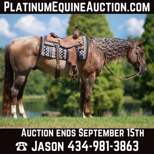 ONLINE AUCTION Place your bids at www.PlatinumEquineAuction.com Starting Bid $3500 Auction ends September 15th, 2024 Need a new saddle? Check out White Rock Saddles on our website or Facebook! DDD Busy Blazin Batt is a 10 year old AQHA RED ROAN Gelding. He stands 15 hh and around 1100lbs. Here is one of the coolest looking geldings with a long beautiful thick main & tail. Bart has been extensively trail ridden/overnight camped & worked in the stocked yards for the last 6 years. He is a very confident trail horse that has seen it all out on the trails. This gelding will cross water, logs, ditches, etc without hesitation. Has a great one hand neckrein, gives to the bit laterally and vertically. He will ride in a soft snaffle with ease. Bart hasn’t had a lot of arena time in his life, but has spent the last 4 months with us. Where we put him through our desensitizing & shown horse program. We have even rode him english & he looks beautiful doing it! This gelding walks, trots, canters collected, side passes, and is started on turn arounds. He works off your seat and leg well. He is a forward moving, forward thinking horse that is going to look SHARP in the ranch arena. This gelding has a natural low and flashy headset. Bart has a to die for extended trot! This gelding isn’t going to be your deadhead babysitter, but if you’re looking for a trail horse that has already seen the sights and is ready to go on with in the arena, here he is! You won’t find another one like him! He stands all day tied, is great for baths, loads, unloads, hauls in anything, and is great for the farrier. Bart is currently barefoot and has excellent feet. Make an appointment today to meet Bart. Shipping is availability anywhere in the US. Located in Robards, KY. Please call/text Jarrod Singleton 434-981-3863 for more information. ONLINE AUCTION Place your bids at www.PlatinumEquineAuction.com Starting Bid $3500 Auction ends September 15th, 2024 Need a new saddle? Check out White Rock Saddles on our website or Facebook!
