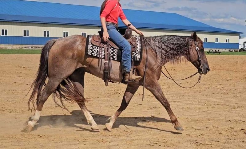ONLINE-AUKTION Geben Sie Ihre Gebote unter www.PlatinumEquineAuction.com ab. Startgebot $3500 Die Auktion endet am 15. September 2024 Brauchen Sie einen neuen Sattel? Schauen Sie sich White Rock Saddles auf unserer Website oder Facebook an! DDD Busy Blazin Batt ist ein 10 Jahre alter AQHA RED ROAN Wallach. Er ist 15 hh und etwa 1100lbs. Hier ist einer der am coolsten aussehenden Wallache mit einem langen schönen dicken Haupt- und Schweif. Bart wurde in den letzten 6 Jahren ausgiebig im Gelände geritten, übernachtet und in den Stallungen gearbeitet. Er ist ein sehr selbstbewusstes Trailpferd, das schon alles auf den Trails gesehen hat. Dieser Wallach überquert Wasser, Baumstämme, Gräben, etc. ohne zu zögern. Er hat einen tollen einhändigen Halsring, gibt seitlich und vertikal nach. Er lässt sich mit Leichtigkeit in einer weichen Trense reiten. Bart hatte in seinem Leben noch nicht viel Zeit in der Reithalle, aber er hat die letzten 4 Monate mit uns verbracht. Dort haben wir ihn durch unser Desensibilisierungs- und Showpferdeprogramm gebracht. Wir haben ihn sogar englisch geritten und er sieht dabei wunderschön aus! Dieser Wallach geht, trabt, galoppiert versammelt, geht an der Seite, und ist auf Turn Arounds gestartet. Er arbeitet gut im Sitz und am Bein. Er ist ein sich vorwärts bewegendes, vorwärts denkendes Pferd, das in der Ranch-Arena SCHARF aussehen wird. Dieser Wallach hat einen natürlich niedrigen und auffälligen Kopf. Bart hat einen unvergleichlichen, ausgedehnten Trab! Dieser Wallach wird nicht der Babysitter für Ihre Deadheads sein, aber wenn Sie ein Trailpferd suchen, das schon alles gesehen hat und bereit ist, in der Arena mitzugehen, dann ist er hier! Sie werden kein anderes Pferd wie ihn finden! Er steht den ganzen Tag angebunden, lässt sich prima baden, beladen, entladen, schleppt alles ein, und ist prima für den Hufschmied. Bart ist derzeit barfuß und hat ausgezeichnete Füße. Vereinbaren Sie noch heute einen Termin, um Bart kennenzulernen. Der Versand ist überall in den USA möglich. Der Standort ist Robards, KY. Bitte rufen Sie an / Text Jarrod Singleton 434-981-3863 für weitere Informationen. ONLINE-AUKTION Geben Sie Ihre Gebote unter www.PlatinumEquineAuction.com ab. Startgebot $3500 Die Auktion endet am 15. September 2024. Brauchen Sie einen neuen Sattel? Schauen Sie sich White Rock Saddles auf unserer Website oder Facebook an!