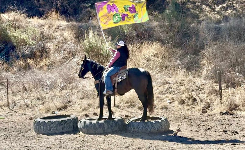 ONLINE-AUKTION Bieten Sie jetzt auf www.PlatinumEquineAuction.com Startgebot: 3.500 USD Auktion endet am 2. November 2025 Benötigen Sie ein neues Sattel? Schauen Sie bei White Rock Saddles auf unserer Website oder Facebook vorbei. Blue Topaz – ruhig, erfahren, ranch- und trailerprobt… Lernen Sie Blue Topaz kennen, den 11-jährigen, 15 Hand großen, blauen Roan-Geldings, der beweist, dass Gelassenheit nicht langweilig sein muss. Er ist die Art Pferd, das jeden Tag mit guter Laune, einem willingen Herzen und gerade genug Stil erscheint, um aufzufallen. Topaz hat seine Portion ehrlicher Rancharbeit geleistet – er hat Kälber brandmarkt, Pärchen sortiert und Zaunlinien bei Tag und Nacht kontrolliert. Er ist der zuverlässige Typ, der nicht überzeugt werden muss: Zeigen Sie ihm die Aufgabe, und er macht sie einfach. Kein Drama, kein unnötiges Gerede, keine „Lass uns darüber sprechen“-Momente – er macht einfach mit. Im Roundpen ist er geschmeidiger als Ihr morgendlicher Kaffee. Er läuft mit tiefem Kopf und lockerem Gang, meistert Wendungen wie im Schlaf und hält weich und gerade an, ohne Rodeo-Show. Sie können ihn elegant reiten oder entspannt – er wird Sie überall wie einen Profi fühlen lassen. Auf dem Trail ist er unerschütterlich. Überquert Wasser, Baumstämme, Brücken und Verkehr wie seinen täglichen Weg. Flaggen, Hunde, Kinder auf Fahrrädern – er hat es gesehen, shruggt und geht weiter. Er ist freundlich beim Hufeauskratzen, Transport, Hufeisen, und Einfangen, und hat diese entspannte, beste-Kumpel-Persönlichkeit, die ihn leicht liebenswert macht. Wenn Sie ein Gelding suchen, auf den Sie sich voll und ganz verlassen können – mit einem Hauch Humor und ganz viel Herz – ist Blue Topaz der Richtige. Standort: Paicines, CA. Versand bundesweit möglich! Rufen Sie Dina vom Longhorn Ranch an oder schreiben Sie eine Nachricht unter 831-537-1915.