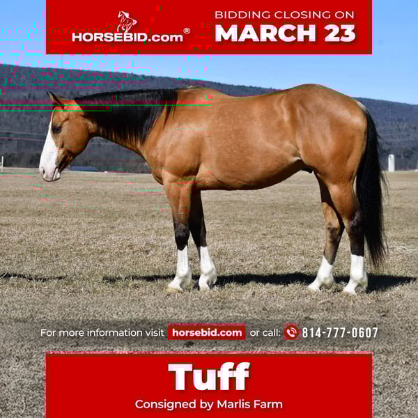 ⚜️𝓽𝓱𝓮 𝐆𝐎𝐋𝐃 𝓢𝓮𝓵𝓮𝓬𝓽⚜️ Happening now thru MONDAY | MARCH 23rd - Available EXCLUSIVELY on HorseBid's website! For more details and to register visit: www.Horsebid.com CONSIGNOR CONTACT: Marlis Farm 814 777 0607 LOCATION: Rebersburg, PA BREED: Quarter horse REGISTERED: Yes REGISTERED NAME: RJ Frosted Canman COLOR: Buckskin HEIGHT: 15.1 AGE: 12 GENDER: Gelding RJ Frosted Canman, barn name “Tuff,” is a beautiful 12-year-old AQHA registered buckskin gelding standing 15.1 hands tall. This gelding is the complete package—super broke, gentle, and extremely versatile. He has the kind of solid mind and willingness that makes him enjoyable for a wide variety of riders. Tuff has been used as a reliable ranch and trail horse and is the kind that stays sane, steady, and dependable in different environments. He has a smooth way of going, a great handle, and rides around quiet and collected. He is the type of gelding that is just as happy going to work as he is enjoying a relaxing day on the trail. With his excellent disposition and solid training, Tuff would also make an outstanding 4-H mount or family horse. He is gentle, well-mannered, and easy to be around, making him a great fit for someone looking for a trustworthy partner. In addition to his great mind and training, Tuff is absolutely gorgeous with his classic buckskin color and eye-catching presence. He is the kind of horse people notice wherever he goes. Tuff is sane, sound, and ready to move into his forever home. Horses like him that are this broke, versatile, and dependable are hard to find For more information or to come meet Tuff, call Mark at 814-777-0607 (call only). We can help arrange shipping anywhere!!