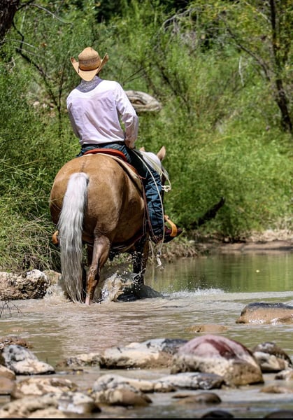 ONLINE AUCTION Place your bids at www.PlatinumEquineAuction.com Starting Bid $3500 Auction ends August 11th, 2024 Need a new saddle? Check out White Rock Saddles on our website or Facebook! If you’re looking for a big stout trail horse deluxe look no further! Zeus is a 10 year old, 15.1hh, stout made golden palomino draft cross gelding. Whether you’re ready to hit the trails, mosey through town, or need to get a job done on the ranch, Zeus is your guy! This nice gelding grew up on the ranch being exposed to lots of miles and just about anything a horse needs to see, setting him up for a great future. Zeus has recently spent his time just being a nice trail horse and has been on plenty of camping and overnight trips. Take him down the rocky trails, or the green pastures and even through town, it won’t make a difference to this guy! This awesome boy is broke to walk, trot, and lope both directions and has a nice stop! Whether you ride everyday, or just a few times a month Zeus will be the same horse every time you pull him out of his stall. Surefooted, sound, and shod all the way around wearing a size 2 shoe! UTD on shots, wormer, shoes and teeth. Zeus and our ranch are located in beautiful Camp Verde, Arizona. We can help arrange delivery to any state across the US! For more info contact D/C Equine Dallas 804-822-2233. ONLINE AUCTION Place your bids at www.PlatinumEquineAuction.com Starting Bid $3500 Auction ends August 11th, 2024 Need a new saddle? Check out White Rock Saddles on our website or Facebook!