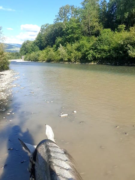 Wallach, geboren: 2014, Stockmaß: 155 cm, Schimmel, QuarterMix Er liebt • die Bodenarbeit, Spaziergänge, Geländeritte Ausgezeichneter Ausbildungsstand, sehr vielseitig gearbeitet, Western geritten Beherrscht beim Reiten • Seitwärts, 2 er Galoppwechsel, Ansätze zur Piaffe Unter dem Sattel ist er ein gemütliches Pferd mit wenig Go. Er wurde immer, egal ob bei Longenarbeit oder vor dem Reiten, gut aufgewärmt. Charakter: sehr ruhig, unerschrocken und verschmust, sehr menschenorientiert. PSSM Test negativ, hatte nie Kolik oder ähnliches; Kein Koppen, Weben etc. Schmiede und verladefromm, kennt sowohl Barhuf als auch Beschlag. Kennt von uns nur 24 Stunden Heu- Fütterung. Er sucht ein neues Zuhause, in dem er freizeitlich gearbeitet wird. Weitere Infos sehr gerne via Telefon, WhatsApp oder Nachricht. Weiteres Kennenlernen gerne möglich:)