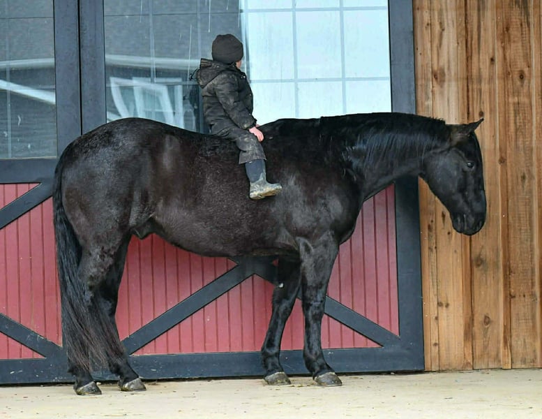 "AVAILABLE ON ONLINE HORSE AUCTION AT www DOT PlatinumEquineAuction DOT com BIDDING OPEN NOW thru SUNDAY | FEBRUARY 15TH! *Final price will be determined on auction site* CONSIGNOR CONTACT INFO: Marlis Farms 814-777-0607 LOCATION: Rebersburg, PA Introducing “Ridge”, a stunning, stout made, 11 year old 15.2 hand blue roan gelding! Not only is he gorgeous, but he is also very versatile with a kind, willing attitude. Ridge is very well broke on the ranch and in the arena - he picks up both leads, neck reins, side passes and has been roped off of! No maintenance or vices, has great ground manners and is good for all the normal barn tasks. Ridge is also seasoned on the trails and rides confidently out alone or with a group. He is surefooted on the trail and crosses anything you point him at! Ridge has ridden into town, is traffic safe and very sensible! He is the good-minded, dependable and flashy type that everyone is looking for! For more information contact Mark @ 814-777-0607 (calls only please).
