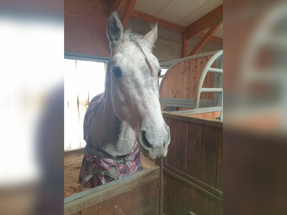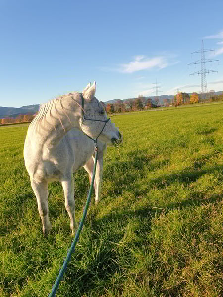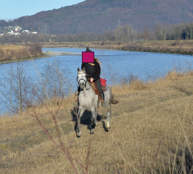 Wallach, geboren: 2014, Stockmaß: 155 cm, Schimmel, QuarterMix Charakter: sehr ruhig, unerschrocken und unglaublich verschmust, sehr, sehr menschenorientiert. Er liebt • die Bodenarbeit, Spaziergänge, Geländeritte Ausgezeichneter Ausbildungsstand, sehr vielseitig gearbeitet, Western geritten, kennt auch die englische Reitweise. Hat eine Grundausbildung in der Reining, hat Reiter schon zum WRC gebracht. Er wurde sehr vielseitig ausgebildet, uns war es immer wichtig, dass er viel kennt. Ebenfalls kennt auch den Trail sowie Gymnastiksprünge. Beherrscht beim Reiten unter anderem • Seitwärts, 2 er Galoppwechsel, Ansätze zur Piaffe Unter dem Sattel ist er auf dem Platz/ in der Reithalle ein gemütliches Pferd. Er wurde immer, egal ob bei Longenarbeit oder vor dem Reiten, gut aufgewärmt. Im Gelände ist er sehr, sehr gerne, er geht gerne hinaus und erlebt etwas. Keine Angst vor Kühen, Autos, LKW, Tieren, Wind, Sturm, Fahrrädern… ect. Bodenarbeit: Kennt Seitwärts von mir weg bzw. auf mich zu, Hinterhand weg/ zudrehen, freies longieren als großer bzw. kleiner Zirkel um einen herum, spanischer Schritt, ablegen auf Kommando… Gesundheit: PSSM Test negativ, hatte nie Kolik oder ähnliches; Kein Koppen, Weben etc. Er hat ein Schimmelmelanom am Hals. Schmiede und verladefromm, kennt sowohl Barhuf als auch Beschlag. Läuft ebenfalls brav in der Führanlage. Er steht in einer Paddockbox; kennt von uns nur 24 Stunden Heu- Fütterung. Er sucht ein neues Zuhause, in dem er freizeitlich gearbeitet wird. Bei Fragen einfach melden (via WhatsApp oder einfach Anrufen😊). Weiteres Kennenlernen gerne möglich:)