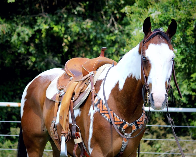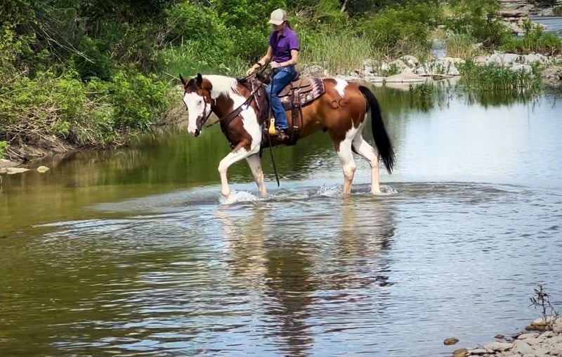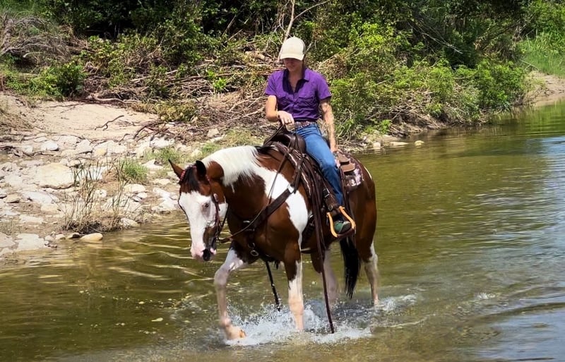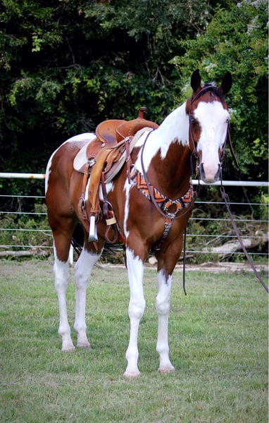 ONLINE AUCTION Place your bids at www.PlatinumEquineAuction.com Starting Bid $3500 Auction ends July 14th, 2024 Need a new saddle? Check out White Rock Saddles on our website or Facebook! Jumanji is an all around flashy dream horse. He’s the kind you can take and do anything you’d like with! Jumanji is a 10 year old grade paint gelding that stands 16 hands tall. Don’t let his size push you away, this guy is a gentle giant. He is gentle no matter if you ride him 5 days a week or once a month, he does not get fresh with time off. He will ride western or English, knows the barrel pattern, and trail rides anywhere the very best. Jumanji rides one or two handed, neck reins, moves off your leg and walks with a low head on a loose rein. He will only go the speed you ask. If you’re looking for a nice calm easy horse to take out and enjoy with friends, this is your guy! We’ve ridden him through town, through drive thrus, and countless miles of trails. Jumanji absolutely loves water and will stop and play in it! He will cross deadfall, bridges, streams, railroad tracks and anything else you may come across without hesitation. This gelding is easy going and not spooky, he takes on any task whyith ease and a steady mind. Jumanji has been exposed to leaf blowers, flags, weed wackers, dogs, four wheelers, traffic, tractors, and cattle. He has also been lightly started over small cross rails jumping and shows promise there, he could make someone a nice flashy hunter. Jumanji has been hauled to playday events and loves to run the barrels, he won’t be your next 1D horse, but he is safe and fun for any level of rider to take and enjoy, without worry. He is freshly shod a week ago, UTD on teeth and chiropractor. He stands tied anywhere, loves baths and grooming, loads and unloads and hauls quietly, and is fantastic for the farrier. Truly, Jumanji is a no worries type of gelding that can be used for any job, by any level of rider, and comes in a flashy package too! Please don’t hesitate to text or call Claire Siebols 435-899-0508 for more info. Located in Grapeland, TX. ONLINE AUCTION Place your bids at www.PlatinumEquineAuction.com Starting Bid $3500 Auction ends July 14th, 2024 Need a new saddle? Check out White Rock Saddles on our website or Facebook!