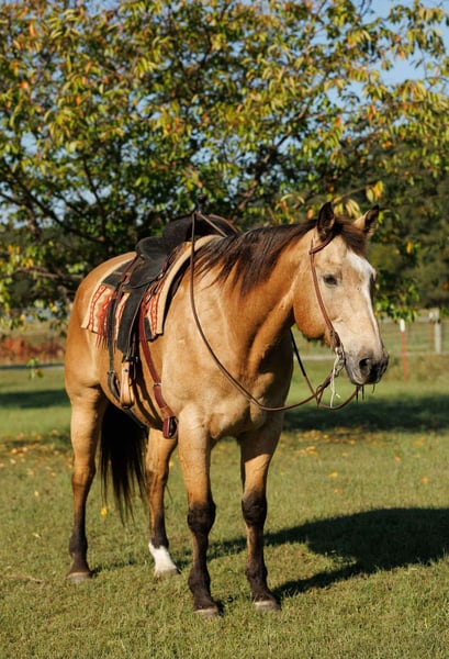 ♦️ 𝐭𝐡𝐞 𝐀𝐌𝐄𝐑𝐈𝐂𝐀𝐍 𝓕𝓪𝓵𝓵 𝓒𝓵𝓪𝓼𝓼𝓲𝓬 ♦️ Happening now thru MONDAY | OCTOBER 20th - Available EXCLUSIVELY on HorseBid's website! For more details and to register visit: www.Horsebid.com CONSIGNOR CONTACT: Lacey Wilf 501-940-8704 LOCATION: Quitman, AR BREED: Quarter Horse REGISTERED: No COLOR: Buckskin HEIGHT: 16.2 AGE: 12 GENDER: Gelding Dino is a striking 16.2 hand, 12-year-old buckskin gelding with the kind of size, presence, and bone that commands attention. He’s big, gentle, and absolutely user-friendly—the kind that carries himself with confidence and rides as right as they come. He’s been headed on some and handles a rope with ease, pulls stout to the horn, faces well, and scores good, all while staying calm and collected. On the ranch, Dino has seen plenty of real work while gathering, sorting, doctoring and checking cattle across big country. He’s a seasoned veteran in the sale barn as well. Comfortable in tight alleys and noisy pens, working gates, penning all classes of stock, and taking the fast pace, echoes, and commotion in stride. On the trail he’s straightforward and the “point-and-go” type. Dino crosses water, bridges, brush, and rough country without hesitation, is sure-footed on rock, and will ease along alone or settle into a group without fuss. He stands to mount, neck reins one-handed, moves off your leg, and carries a soft, collected lope that makes long miles easy. On the ground he’s just as cooperative—easy to catch, saddle, bridle, load, haul, bathe, and shoe. He ties quiet and is the same horse after time off as he is with steady riding. Best of all, Dino suits most all levels of rider without issue. He’s honest enough for a careful novice to learn on, big and broke enough for a hand to go make a living with, and kind enough to give guests a confidence-building ride. Dino has the kind of loving, easygoing character that wins everyone over—he genuinely enjoys people, meets you at the gate with a soft eye, and carries a calm, kind presence that makes him impossible not to love. If you want a large, classy gelding that handles the job and keeps it uncomplicated—in the arena, on the ranch, or down trail. Dino can master any job and make you look good doing it!