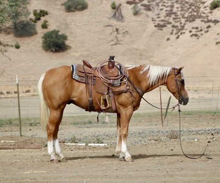 Augustus aka Gus is a 14.3 hand, 12 year old, palomino gelding that’s broke, dependable, and practical. He’s the kind you can saddle up and get right to work on without a fuss. Simple to ride, correct in his way of going, and steady-minded, he fits both ranch and trail life with ease. On the trail he carries a good forward walk, covers country without dragging, and goes wherever you point him. He’ll cross water, logs, bridges, and brush without hesitation, and he doesn’t blink at flags, tarps, dogs, wildlife, or highway traffic. Whether you’re riding through the hills, heading down the road, or working through a set of obstacles, Gus stays straight, quiet, and reliable. He’s easy to haul and settles well in new places. Pasture or stall makes no difference to him — he’s content either way. He tacks up without a fight, stands tied all day, and is good for the farrier and vet. In the arena he’s collected, soft in the bridle, and responsive to leg cues. He’s not fancy or complicated, but he gives you a ride that’s correct and comfortable every time. Augustus is the kind of gelding that makes life simple. Good-minded, useful, and good-looking, he’s the sort that always earns his keep.