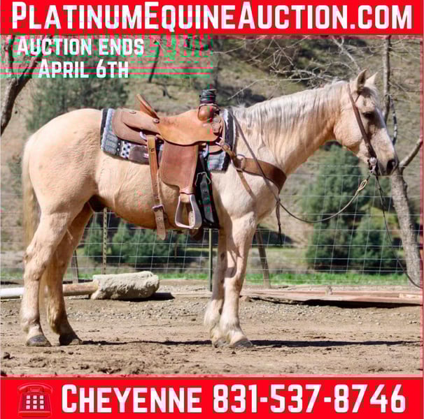 ONLINE AUCTION Place your bids at www.PlatinumEquineAuction.com Starting Bid $3500 Auction ends April 6th, 2025 Need a new saddle? Check out White Rock Saddles on our website or Facebook! Charlie is your child’s new best friend! If you’re looking for safe, honest and fun, look no further! Charlie is 14.2HH and 12 years old. This guy is as gentle as the day is long! The ultimate trail companion with his years of experience, he is as versatile as they come! Charlie has been down many busy roads, long thick country trails, and has the best attitude about anything. He never gets in a hurry, and has no problem going anywhere you point him without zero refusal. He is safe for any level, any experience, any age. He has a very easy, calm demeanor, with a more “whoa than go” approach. With all his trail experience, he also would be the perfect playday partner. He knows the barrel pattern, as well as the other playday events. He never gets anxious, or nervous in high stress situations. Charlie doesn’t care about anything. Ropes, tarps, or bouncing balls all around his legs and belly. He has carried flags, crosses bridges, and standing water. He walk, trot, lopes perfect circles and is smooth and steady in his gaits. He has a nice whoa, collected reverse, and is very easy to direct with his one handed neck rein. He’s so broke you don’t need a bridle, just ride him with a string around his neck. Charlie is a true gem. He is a gentleman on the ground and has great manners. He will stand tied quietly, lets you bathe or tack him up without a move. Loads easily in the trailer, hauls quietly. He is the horse you can put your entire family on, from toddlers to grandparents, and everything in between. A TRUE family horse. He is located in Bitterwater, CA. for more info or to come see him in person. Contact Cheyenne Rey 831-537-8746. ONLINE AUCTION Place your bids at www.PlatinumEquineAuction.com Starting Bid $3500 Auction ends April 6th, 2025 Need a new saddle? Check out White Rock Saddles on our website or Facebook!