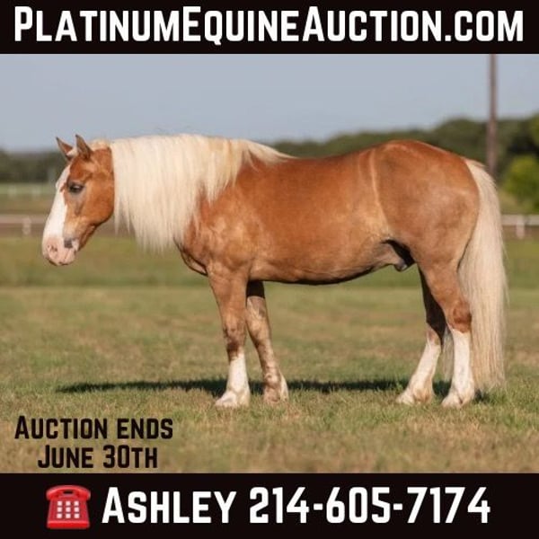 ONLINE AUCTION PLACE YOUR BIDS AT PLATINUMEQUINEAUCTION DOT COM $3500 STARTING BID AUCTION ENDS JUNE 30TH “Scooter” – 14.2H, 11 year old golden palomino/chestnut Haflinger gelding. We could sell 10 horses every single week like Scooter – we get calls asking for his kind – daily. If you want one that your kiddos ask to ride everyday and really enjoy and are relaxed riding, then don’t miss him! He is so fun, pleasant and easy. He is just the whole package that everyone is looking for in a pleasure and trail horse – he is thick made, stout, and the perfect size that is easy to saddle, easy to step up on, comfy and not intimidating for the new or the smaller riders. He measure only at 14.2H – but looks way bigger! He has a huge barrel, and he is stout and thick enough made to handle the larger riders too. Scooter has literally been to town more miles than most! He has probably been ridden to town…more than he has been home – this one is about as comfy and relaxed in commotion, traffic, and at events – as he is in his own field! He could care less what is going on around him and is as confident as they come in hectic situations. Scooter is a simple point and shoot style ride, has a great stop on “whoa”, and has incredibly smooth and easy to sit gaits. Haflingers don’t come in this color often – and rarely with all the chrome too! Scooter is gorgeous with his eye-catching light golden/almost palomino chestnut color, with his HUGE bright mane and tail – and he has the most adorable endearing personality, he is super friendly and everyone here absolutely loves him. We have not found one thing to complain about with this one, he has an exceptional disposition, is always relaxed, and has spectacular ground manners. Scooter was just shod this past week, his teeth were also done by an equine dentist last week, and he had his sheath cleaned, his ears treated for ticks, and he was also power packed wormed. He is good to shoe, has great feet and also goes well barefoot – if his new owner prefers him to be barefoot, we can have his shoes pulled and trim him prior to him heading to his new home. He will arrive at his new home up-to-date and ready to go to work! We are experienced, knowledgeable sellers, and we can help with quickly arranging affordable shipping to any buyer’s location – we have experience shipping worldwide – including regularly to Hawaii, Canada, Mexico, Europe, and South Africa. Please call Buster Horses Ashley 214-605-7174 Located in Weatherford, TX.