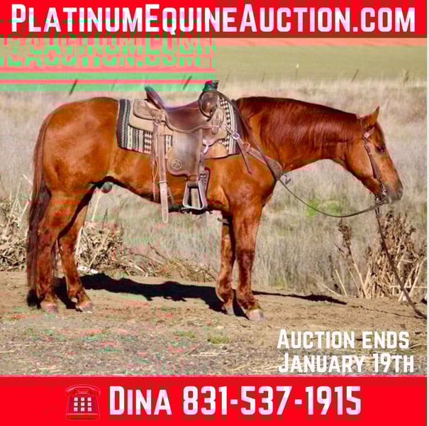 ONLINE AUCTION Place your bids at www.PlatinumEquineAuction.com Starting Bid $3500 Auction ends January 19th, 2025 Need a new saddle? Check out White Rock Saddles on our website or Facebook! Amigo is such an amazing 12-year-old Red Dunn gelding, standing perfectly at 14.3 hands tall! He really is the ideal equine buddy. His gentle nature makes him perfect for riders of all levels, and he responds so well to a light neck rein, with a nice turn around and smooth stop moving smoothly and gracefully. Whether you’re tackling tough trails, like switchbacks and water crossings, or pushing through thick brush, Amigo handles it all like a pro. He’s a fantastic ranch horse, great at gathering cattle and checking on cows, and he’s especially safe and fun for nervous riders. You can count on him to take on any challenge—tires, bridges, or even a silly pool noodle car wash—he’s just so trustworthy! Plus, he stays calm in busy places, whether it’s highways or crowded streets, even with distractions like flags and bouncing balls, which really shows off his training and temperament. This guy is super easy to tie, clip, and bathe, and he loads into any trailer without a fuss—just a sign of how relaxed he is. Amigo’s adaptability is incredible; he fits into new environments as if he’s been there before, making everything seem effortless. He’s just as comfortable in stalls as he is in pastures, which makes him so versatile. He is great for the farrier and vet visits and is up to date on vaccines and deworming. Amigo is free of any bad habits. If you’re looking for a gentle, easy-going gelding to help you learn the ropes of horse ownership, Amigo is your guy. You really won’t find another horse like him. If you’re interested, reach out to Longhorn Ranch in Paicines, CA, and talk to Dina at +1 (831) 537-1915. I can’t wait for you to meet this magnificent gelding! ONLINE AUCTION Place your bids at www.PlatinumEquineAuction.com Starting Bid $3500 Auction ends January 19th, 2025 Need a new saddle? Check out White Rock Saddles on our website or Facebook!