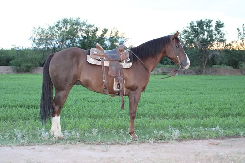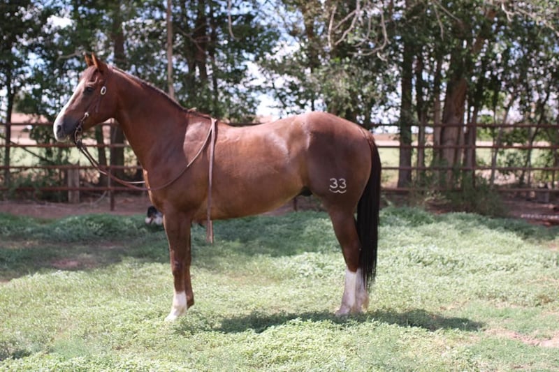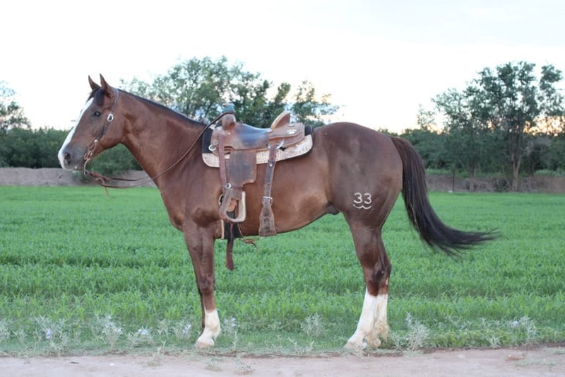 ONLINE AUCTION Place your bids at www.PlatinumEquineAuction.com Starting Bid $3500 Auction ends July 20th 2025 Need a new saddle? Check out White Rock Saddles on our website or Facebook 33 is the absolute all around horse! He’s a true gentleman, a reliable and safe family horse. 33 is a smoooooth traveler! He’s been trail road and ranched on in west Texas. He’s as solid as they come. He’s a very reliable using horse that will get a cowboys job done or be a family horse and cruise down the road for an evening trail ride. 33 is 15h tall, he is 12 years old, he’s got the coolest dark chocolate color. He’s an absolute saint ! He has the personality that will fit any level ride you can walk slow or walk fast, lope slow or lope fast he has any speed you desire to go and will take care of his rider. He is the horse we bring out for the kids or when our city slicker friends come over to ride, he wants to be your friend . We’ve used him in extensively on the ranch from rounding cows up and driving them from pasture to pasture or checking fences. He’s also a solid head horse he’s rope a lot of cattle in and out of the arena. he’s good in the box and will really watch a cow, he’ll be strong to the horn and will get the job done. He knows his leads, he will lope big pretty circles. He’s been around the barrels, flags, tarps, traffic, he’s absolutely safe for any level rider will be safe everyday of the week and 100% reliable. He is easy to shoe, saddle , bathe , load and haul with no issues. He will be straight legged no bumps or blemishes. If you are looking for your next family/kid horse 33 is your guy don’t miss this gem of a horse. Located in El Paso, TX. Contact Lauren Lara 915-474-5453 with any questions. ONLINE AUCTION Place your bids at www.PlatinumEquineAuction.com Starting Bid $3500 Auction ends July 20th 2025 Need a new saddle? Check out White Rock Saddles on our website or Facebook