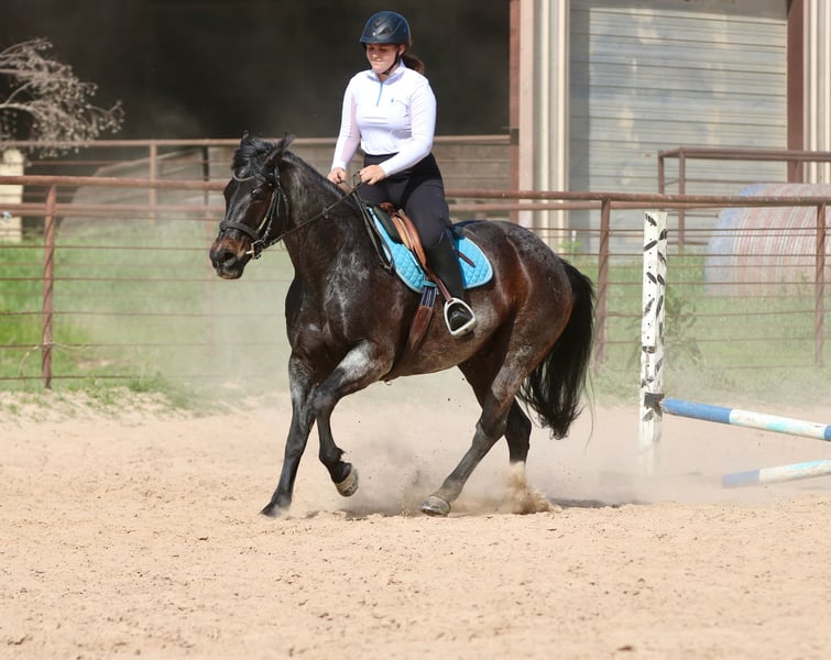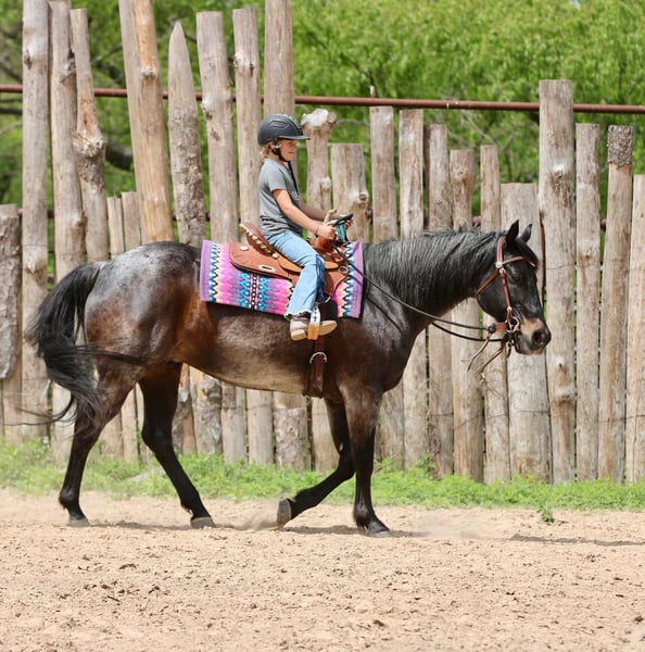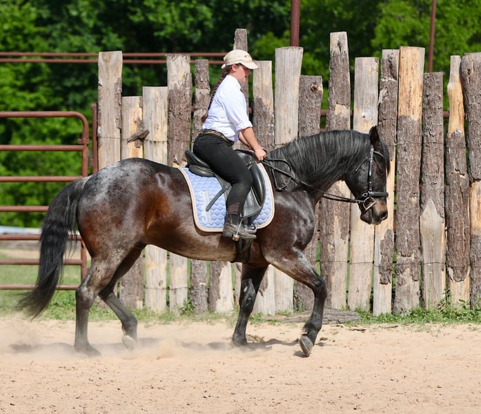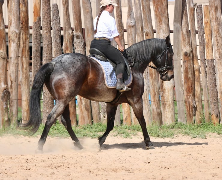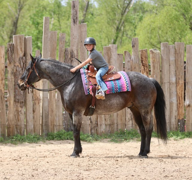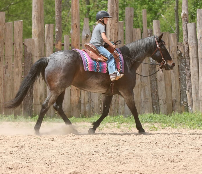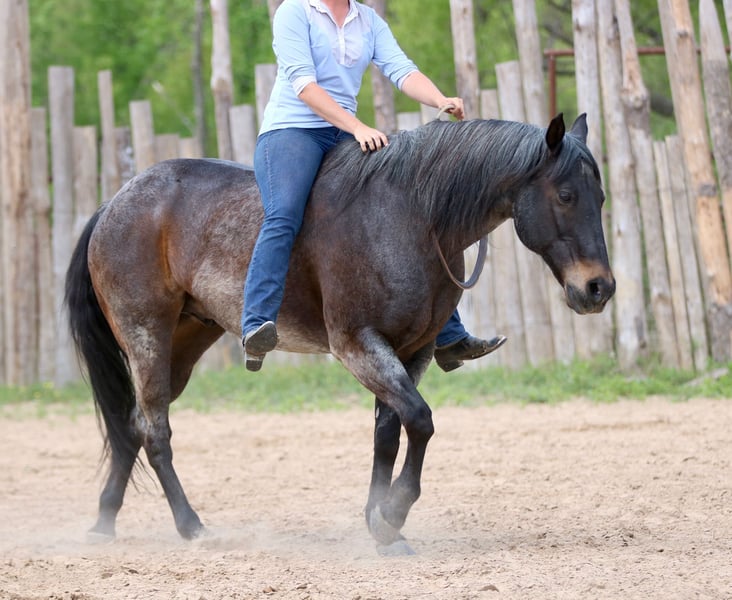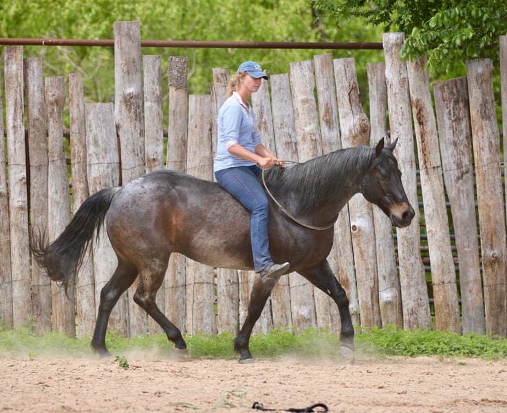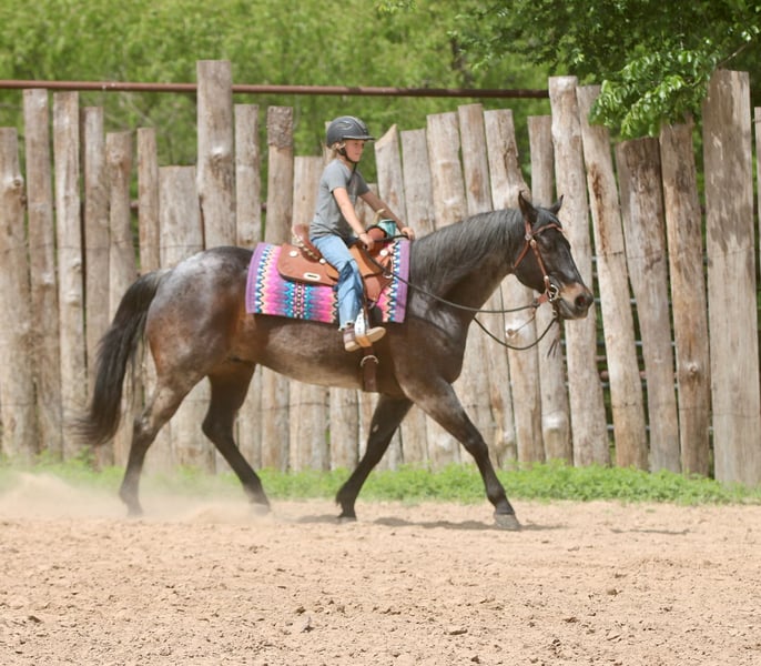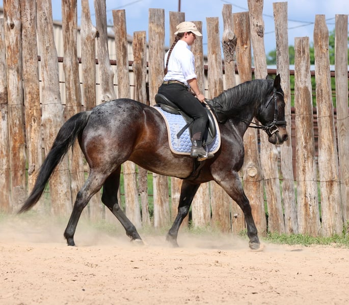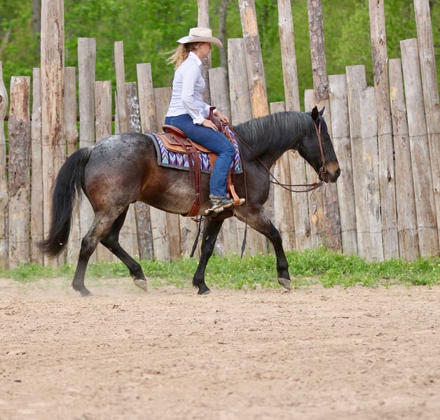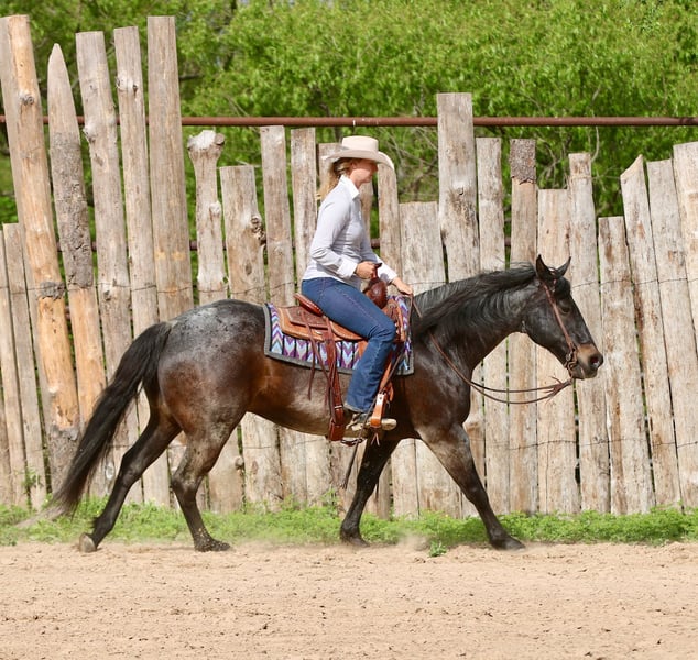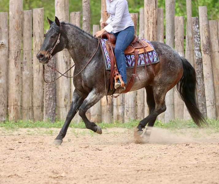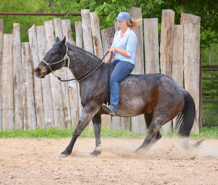 Stetson, un potro de 13 años, de 1,65 m, color bay roan, gelding de AQHA