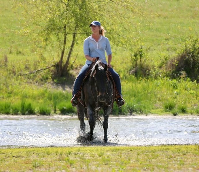 ⚜️𝐭𝐡𝐞 𝓔𝓵𝓲𝓽𝓮 𝐒𝐩𝐫𝐢𝐧𝐠 𝐂𝐥𝐚𝐬𝐬𝐢𝐜⚜️ Happening now thru MONDAY | APRIL 20th - Available EXCLUSIVELY on HorseBid's website! For more details and to register visit: www.Horsebid.com CONSIGNOR CONTACT: The Good Gelding Company 903-275-0343 LOCATION: Athens, TX BREED: Quarter Horse REGISTERED: Yes REGISTERED NAME: GGC Stetsons Blue Jeans COLOR: Bay roan HEIGHT: 15 AGE: 13 GENDER: Gelding Stetson — The Kind You Keep Forever There’s something special about a horse that checks every box without trying too hard—and Stetson is exactly that kind. This 13-year-old bay roan gelding stands a solid 15 hands and offers the kind of natural build, eye appeal, and presence that never goes unnoticed. He’s the kind that looks the part, but more importantly, he rides the part. Stetson is the definition of broke, user-friendly, and dependable. He carries himself with a quiet confidence and operates off a true drape rein with a flawless neck rein. Everything about him feels easy—soft in the bridle, responsive without being reactive, and steady in a way that builds confidence in his rider. He’s the same horse every time you pull him out, whether he’s been in consistent work or enjoyed a little time off. His temperament is what truly sets him apart. Stetson is safe—genuinely safe—for just about anyone. He’s forgiving, patient, and kind-minded, making him equally suited for a beginner gaining confidence or a seasoned rider wanting something uncomplicated and enjoyable. He’s the kind you can put your family and friends on without a second thought. Out on the trail, Stetson is exactly what everyone is searching for—quiet, confident, and absolutely dependable. He’ll go wherever you point him with no fuss, handling terrain, obstacles, and new environments with a level head and steady demeanor. Whether you’re easing down the trail on a loose rein or covering ground, he stays consistent and trustworthy. In the arena, Stetson brings added value with his experience heading and heeling. He’s an excellent fit for a child learning the ropes or an older, low-number roper who wants something reliable and forgiving. He has a motor when asked, but he’s never in a hurry—he keeps everything smooth, controlled, and comfortable. While we have ridden him English and he will quietly step over cross rails, Stetson truly shines in a western program where his style, handle, and natural way of going stand out. Stetson is the kind of gelding that is getting harder and harder to find—one that combines looks, feel, versatility, and true usability into a single, uncomplicated package. He’s the one you enjoy every day, the one that makes you look forward to your next ride.