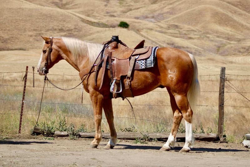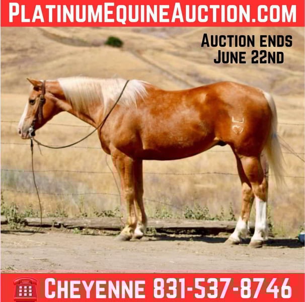 ONLINE AUCTION Place your bids at www.PlatinumEquineAuction.com Starting Bid $3500 Auction ends June 22nd, 2025 Need a new saddle? Check out White Rock Saddles on our website or Facebook! Meet Brando, a stunning, 15h, 12-year-old dark golden Palomino gelding with a super stocky build, ready to carry any rider to the ride of their dreams! Brando’s got a wealth of experience, from working around cattle to exploring trails all over the beautiful central coast national parks. He confidently handles any obstacle out on trails, like rushing creeks, steep ditches, fallen logs, and rocky terrain. Put on the town he remains unfazed by traffic, including semi-trucks, bicyclist and pedestrians. You can enjoy his smooth jog and comfortable lope, along with his reliable stop and soft back. Brando always has a steady demeanor, which is consistent whether ridden daily or occasionally. He’s seen all kinds of wildlife and bravely goes wherever you point him, navigating obstacles, flags, and tarps with ease. With countless miles in the mountains, he’s sure-footed on steep slopes, deep creeks, and rough terrain. Brando has been in the pasture as well as, stall environments. Brando is easy to tack up, enjoys riding solo or in groups, and is eager to find his new best friend! For anymore information please call or text Cheyenne Rey 831-537-8746. He is located in Bitterwater, CA. ONLINE AUCTION Place your bids at www.PlatinumEquineAuction.com Starting Bid $3500 Auction ends June 22nd, 2025 Need a new saddle? Check out White Rock Saddles on our website or Facebook!