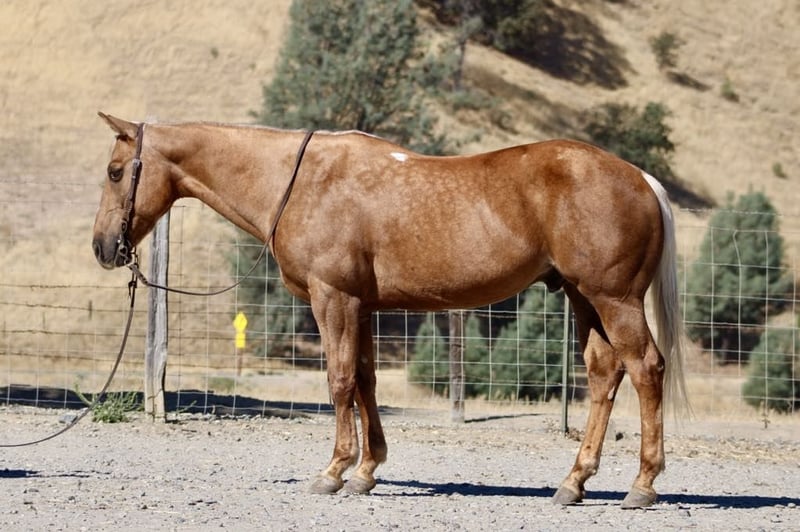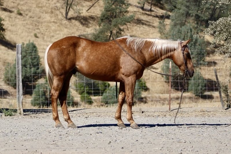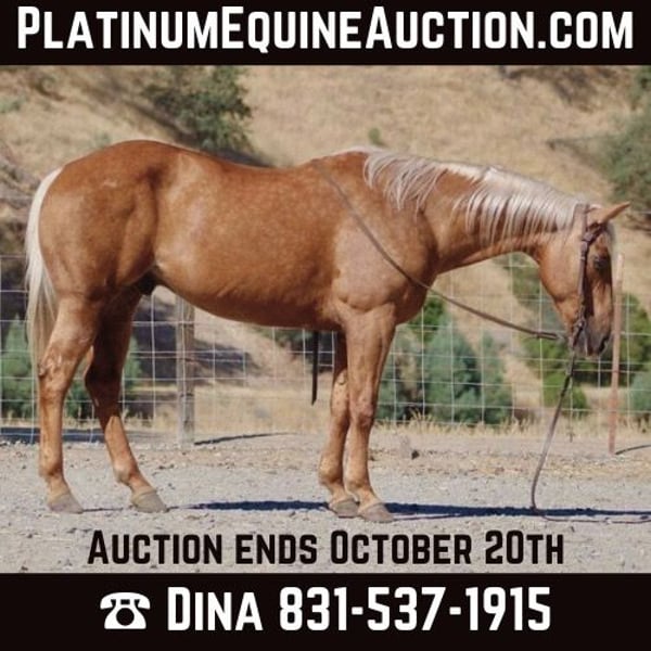 ONLINE AUCTION Place your bids at www.PlatinumEquineAuction.com Starting Bid $3500 Auction ends October 20th, 2024 Need a new saddle? Check out White Rock Saddles on our website or Facebook! Buttercup is a beautiful boy who is a testament to beauty and reliability. This stunning dark golden dapple palomino gelding, measuring a graceful 15 hands and graced with 11 years of life experience, exudes charm that is truly unparalleled. His name reflects his gentle disposition; he is the embodiment of trustworthiness. Buttercup is the horse families yearn for an exceptional riding partner. With effortless grace, Buttercup glides through both arena and trail alike, offering riders an amazing journey where every move feels fluid and harmonious. His one-hand neck reining makes him a dream to ride; if you can hold the reins, you possess the key to unlock countless adventures on this magnificent creature. Whether meandering through serene trails or tackling challenging steep hillsides or crossing flowing rivers this guy is rock solid! Buttercup navigates with confidence and poise. He thrives in diverse settings from bustling ranch rodeos to tranquil camping trips where his easy-going nature shines bright like gold dust in sunlight. The thrill-seeker will find joy in Buttercup’s willingness at obstacle courses while those seeking peace will appreciate how completely unflappable he is amidst honking cars or roaring trains passing closely by without so much as a flicker of concern from his kind eyes. Whether it’s gathering cattle with finesse or gracefully crossing teetering bridges built for daring souls, this remarkable gelding approaches each task with unwavering dedication and care. Buttercup’s warm personality shines in every aspect. Buttercups is easily handled by beginners youngsters to teamsters with zero issues. He tacks up like a soldier knows the routine and will stand confident and patient for grooming session or farrier appointments. He hauls amazing and will jump in any trailer. He will live in pasture or stall setting. Buttercup is a gelding that will be an absolute joy to own. Please contact Longhorn Ranch Dina 831-537-1915 located in Paicines, CA. ONLINE AUCTION Place your bids at www.PlatinumEquineAuction.com Starting Bid $3500 Auction ends October 20th, 2024 Need a new saddle? Check out White Rock Saddles on our website or Facebook!
