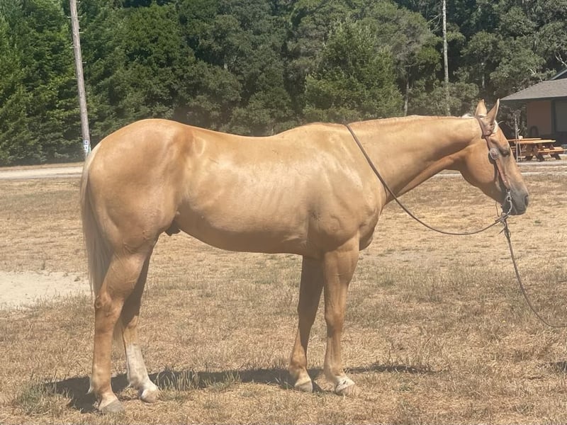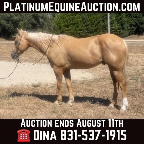 ONLINE AUCTION Place your bids at www.PlatinumEquineAuction.com Starting Bid $3500 Auction ends August 11th, 2024 Need a new saddle? Check out White Rock Saddles on our website or Facebook! Applesauce is a handsome palomino gelding he is a solid built and stout boy standing 15.1 hands and 11 years old. Applesauce is the definition of a true gentleman. He is a trusty steady eddie ride. He is content cruising down any trail and will be the one you can count on to be confident and will to navigating through most any type of terrain. He will go through dense forest, cross rushing rivers, and climb the highest mountains remaining sure footed. Applesauce has been ridden at state parks and is used to hikers, bikers and families walking the trails. He is not bothered with any of it. He has been ridden by timid riders to advanced. He will be patient and gentle will adapt for different levels. Applesauce has seen all the trail obstacles and will willingly accomplish them. Applesauce will calmly walk over the tittering bridge, climb right on the tires, walk over poles and try most any obstacle you can think of. He doesn’t get bothered by the tarp, ball or flying flags. Applesauce will walk trot and lope correct circles and picks up the correct leads and transitions nicely. He has a nice stop and easy back up and is very responsive to cues. He has been out to gather cattle, checking fence and ride through pairs. He is easy to tack up, clip and loves to be groomed he will talk to you when you go out to catch him. He is very friendly and happy to go out with you. This boy would be a great addition to a family that loves a horse with personality. Applesauce is a more whoa then go and very content just moseying along checking out new sights. He will meet you at the gate and is happy to see you. He is the one you can count on for countless adventures and to know he will always be a solid companion. To meet this handsome hunk contact Longhorn Ranch, Dina 831-537-1915 located in Paicines, CA. ONLINE AUCTION Place your bids at www.PlatinumEquineAuction.com Starting Bid $3500 Auction ends August 11th, 2024 Need a new saddle? Check out White Rock Saddles on our website or Facebook!