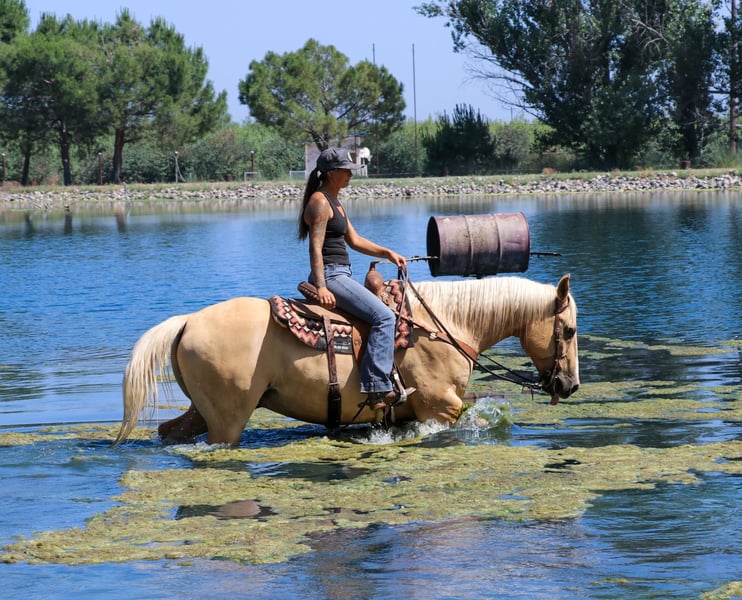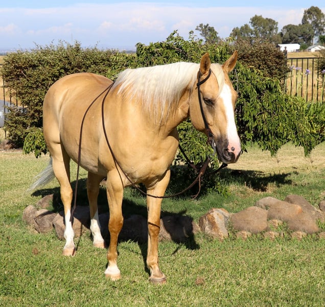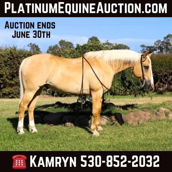 ONLINE AUCTION PLACE YOUR BIDS AT PLATINUMEQUINEAUCTION DOT COM $3500 STARTING BID AUCTION ENDS JUNE 30TH Introducing Blaze a 11 year old 15.1 hands, a breathtaking Dunalino with eye-catching tiger-striped legs and a striking dorsal stripe. This stunning horse is not just a beauty to behold, but also a versatile and accomplished partner in a variety of equestrian disciplines. Blaze’s natural, shiny coat and distinctive markings make him a head-turner wherever he goes. His unique appearance is complemented by his grace and presence, making him a true standout in any setting, whether in the arena or on the trails. Blaze excels in the arena with a solid foundation in both Western and English riding. He: – Knows His Leads: Blaze transitions smoothly and effortlessly. – Has a Good Stop: Responds promptly and reliably to commands. – Collects His Head: Maintains a beautiful frame and carriage. Blaze has also been introduced to barrel racing and has shown promising potential. He has been hauled to several gymkhanas, demonstrating his ability to adapt to new challenges. In addition to his Western training, Blaze has been started in English riding. He has shown great aptitude over ground poles, indicating his versatility and readiness for further training in jumping or dressage. Blaze is a seasoned trail horse with experience navigating various terrains with ease and confidence. His trail credentials include: – Sure-footedness: Confidently handles rocky terrain, creeks, deep water, and logs. – Mountain Packing: Has been used in steep mountain environments for packing, making him unfazed by overnight stays and camping trips. – Bridge Crossing: Comfortable and steady when crossing bridges and other obstacles. Blaze also side passes to open gates and pretty much knows what to do for you. Blaze has been lightly roped on and took to it with ease, showing his calm demeanor and willingness to learn. His exposure to gymkhanas further highlights his adaptability and eagerness to please. Blaze’s has been used for lessons, handling novice riders with patience and care. His calm disposition and reliable performance make him a wonderful horse for anyone looking to learn and grow in their equestrian journey. He stands for the farrier, groomed, bathed, to be saddled, blanketed. He is outstanding for the little kids to groom because he stands like a rock. Blaze is ready to embark on new adventures with his next owner. Whether you’re looking for a trail partner, a versatile show horse, or a reliable lesson horse, Blaze is the perfect choice. His extensive experience, combined with his stunning appearance and gentle temperament, make him an exceptional addition to any equestrian family. He is currently UTD on shots, feet, and worming. Blaze is a rare find, combining beauty, versatility, and an easy-going personality. He is eager to please and ready to take on any challenge with grace and confidence. Contact us today KW RANCH Kamryn 530-852-2032 to schedule a visit and see Blaze in action. He’s ready to meet you and become your next equine partner! Located in Pleasant Grove, CA.