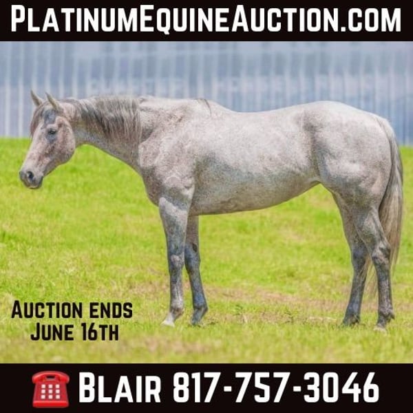 ONLINE AUCTION Place your bids at www.PlatinumEquineAuction.com Starting Bid $3500 Auction ends June 16th, 2024 Need a new saddle? Check out White Rock Saddles on our website or Facebook! Sah Katie Kat Zip aka “Katie” is a 2013’, 16H AQHA gray mare. She’s been used on a working ranch her whole life and rides like the best of them. Katie is big, STOUT and gorgeous. She’s absolutely broke broke broke and is fancy! She rides one handed, is soft in the face and moves of leg great! She would make a great trail/ranch pleasure horse as she is or take her and make her an arena prospect! Katie is extremely kind, gentle and has the best personality! She’s wants to please and has a “get to work” attitude! She’d make an excellent trail horse or ranch horse for anyone looking for a big COMFY one! Katie is easy to handle in all aspects and loads, leads, bathes and ties with no issues. She absolutely isn’t “marish” at all, in a string of geldings, you wouldn’t be able to point out the mare. She goes exactly the speed you ask and stops perfectly! You’ll absolutely love how broke this mare is! She works soft in the palm of your hand and rides like a dream. Katie just had her teeth done by an equine dentist and has a fresh set of shoes! Don’t miss this ready to get to work, exceptional mare! Please call Blair with North Texas Horse Company for more info at 817-757-3046. We love to talk about her! We are located in Weatherford, TX and can help arrange affordable shipping to anyone!! ONLINE AUCTION Place your bids at www.PlatinumEquineAuction.com Starting Bid $3500 Auction ends June 16th, 2024 Need a new saddle? Check out White Rock Saddles on our website or Facebook!