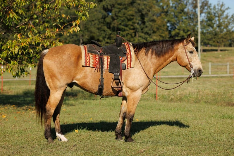 ♦️ 𝐭𝐡𝐞 𝐀𝐌𝐄𝐑𝐈𝐂𝐀𝐍 𝓕𝓪𝓵𝓵 𝓒𝓵𝓪𝓼𝓼𝓲𝓬 ♦️ Happening now thru MONDAY | OCTOBER 20th - Available EXCLUSIVELY on HorseBid's website! For more details and to register visit: www.Horsebid.com CONSIGNOR CONTACT: Lacey Wilf 501-940-8704 LOCATION: Quitman, AR BREED: Quarter Horse REGISTERED: No COLOR: Buckskin HEIGHT: 16.2 AGE: 12 GENDER: Gelding Dino is a striking 16.2 hand, 12-year-old buckskin gelding with the kind of size, presence, and bone that commands attention. He’s big, gentle, and absolutely user-friendly—the kind that carries himself with confidence and rides as right as they come. He’s been headed on some and handles a rope with ease, pulls stout to the horn, faces well, and scores good, all while staying calm and collected. On the ranch, Dino has seen plenty of real work while gathering, sorting, doctoring and checking cattle across big country. He’s a seasoned veteran in the sale barn as well. Comfortable in tight alleys and noisy pens, working gates, penning all classes of stock, and taking the fast pace, echoes, and commotion in stride. On the trail he’s straightforward and the “point-and-go” type. Dino crosses water, bridges, brush, and rough country without hesitation, is sure-footed on rock, and will ease along alone or settle into a group without fuss. He stands to mount, neck reins one-handed, moves off your leg, and carries a soft, collected lope that makes long miles easy. On the ground he’s just as cooperative—easy to catch, saddle, bridle, load, haul, bathe, and shoe. He ties quiet and is the same horse after time off as he is with steady riding. Best of all, Dino suits most all levels of rider without issue. He’s honest enough for a careful novice to learn on, big and broke enough for a hand to go make a living with, and kind enough to give guests a confidence-building ride. Dino has the kind of loving, easygoing character that wins everyone over—he genuinely enjoys people, meets you at the gate with a soft eye, and carries a calm, kind presence that makes him impossible not to love. If you want a large, classy gelding that handles the job and keeps it uncomplicated—in the arena, on the ranch, or down trail. Dino can master any job and make you look good doing it!