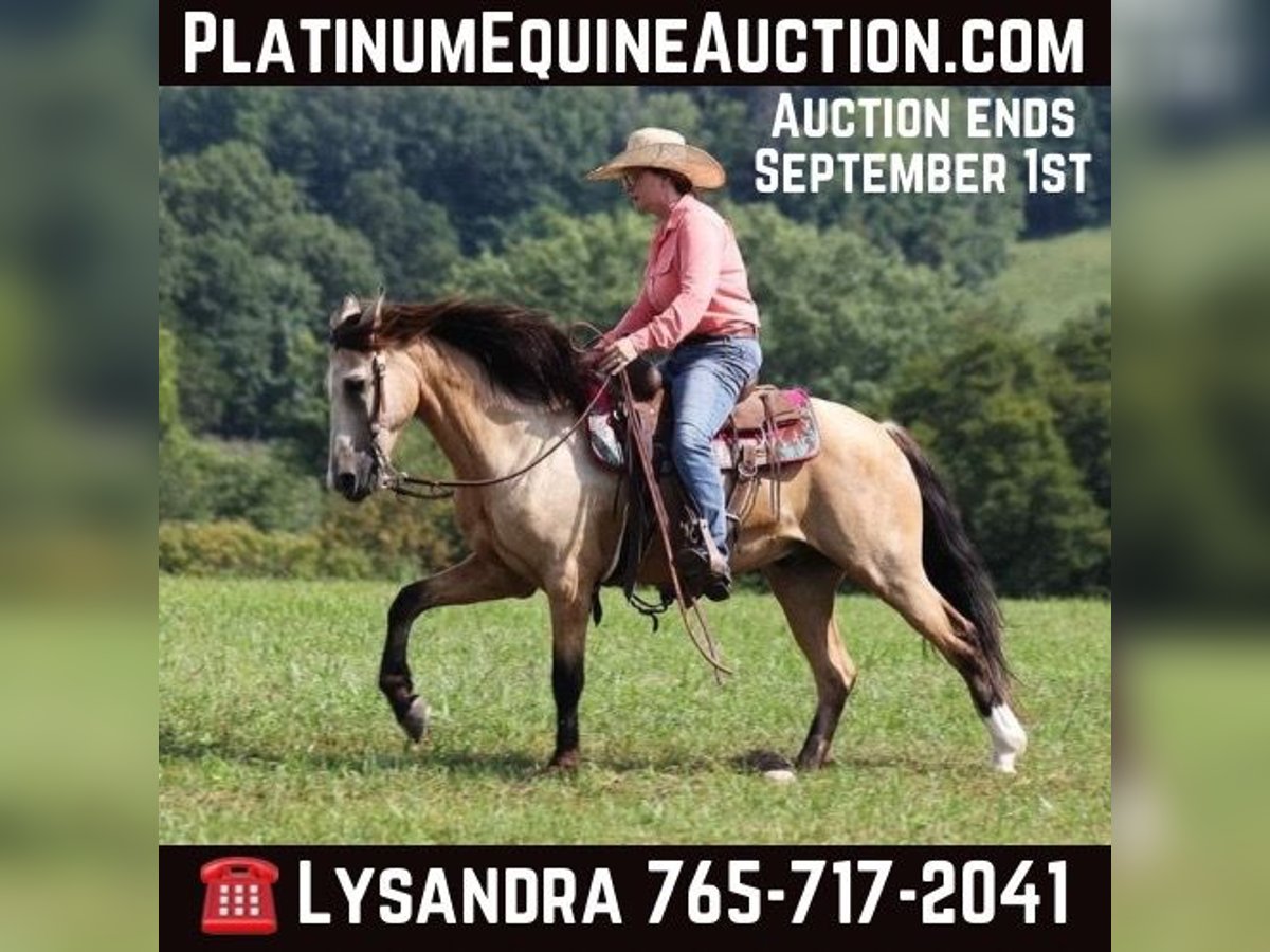 ONLINE AUCTION Place your bids at www.PlatinumEquineAuction.com Starting Bid $3500 Auction ends September 1st, 2024 Need a new saddle? Check out White Rock Saddles on our website or Facebook! Amigo is everyones best friend! And he is not a bad friend to have around… he has a lot of things going for him, such as that beautiful buckskin, coat, that friendly personality, that sweet lope and that big thick mane! He is certainly is a dream come true! Amigo is an 11 year old buckskin quarter horse cross gelding standing around 14.1hh. Amigo has done it all out on the ranch he has pasture roped and doctored sick ones, been hauled to barrel races and rode down the trails! Amigo has been ridden in multiple states from New Mexico to Kentucky. He will cross creeks, ditches, logs and navigate rough rocky areas. He has a nice ground covering walk, smooth jog, a good lope, he reins around anc backs as well! He has been exposed to all kinds of wildlife such as deer or turkey or other animals like cows or dogs and will go anywhere that he is asked too. He has been rode many miles in the mountains of Eastern Kentucky and encountered every obstacle possible on the trail. He will go up or down even the steepest slopes, across deep creeks, over downed trees, and over all types of rough terrain while still being sure footed. If you want to have a good ride and look good on your ride all at the sametime… Amigo is your man!!! Feel free to call Lucky 13 Equine Lysandra 765-717-2041 with any questions. Located in Brodhead, KY. ONLINE AUCTION Place your bids at www.PlatinumEquineAuction.com Starting Bid $3500 Auction ends September 1st, 2024 Need a new saddle? Check out White Rock Saddles on our website or Facebook!