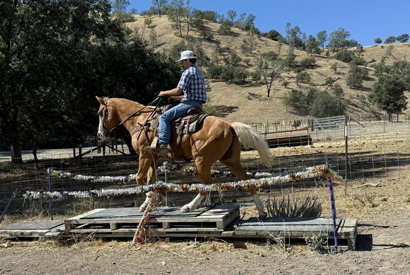 ONLINE AUCTION Place your bids at www.PlatinumEquineAuction.com Starting Bid $3500 Auction ends October 19th, 2025 Need a new saddle? Check out White Rock Saddles on our website or Facebook Augustus aka Gus is a 14.3 hand, 12 year old, palomino gelding that’s broke, dependable, and practical. He’s the kind you can saddle up and get right to work on without a fuss. Simple to ride, correct in his way of going, and steady-minded, he fits both ranch and trail life with ease. On the trail he carries a good forward walk, covers country without dragging, and goes wherever you point him. He’ll cross water, logs, bridges, and brush without hesitation, and he doesn’t blink at flags, tarps, dogs, wildlife, or highway traffic. Whether you’re riding through the hills, heading down the road, or working through a set of obstacles, Gus stays straight, quiet, and reliable. He’s easy to haul and settles well in new places. Pasture or stall makes no difference to him — he’s content either way. He tacks up without a fight, stands tied all day, and is good for the farrier and vet. In the arena he’s collected, soft in the bridle, and responsive to leg cues. He’s not fancy or complicated, but he gives you a ride that’s correct and comfortable every time. Augustus is the kind of gelding that makes life simple. Good-minded, useful, and good-looking, he’s the sort that always earns his keep. Located in Paicines, California. Call or text Dina with Longhorn Ranch 831-537-1915 ONLINE AUCTION Place your bids at www.PlatinumEquineAuction.com Starting Bid $3500 Auction ends October 19th, 2025 Need a new saddle? Check out White Rock Saddles on our website or Facebook