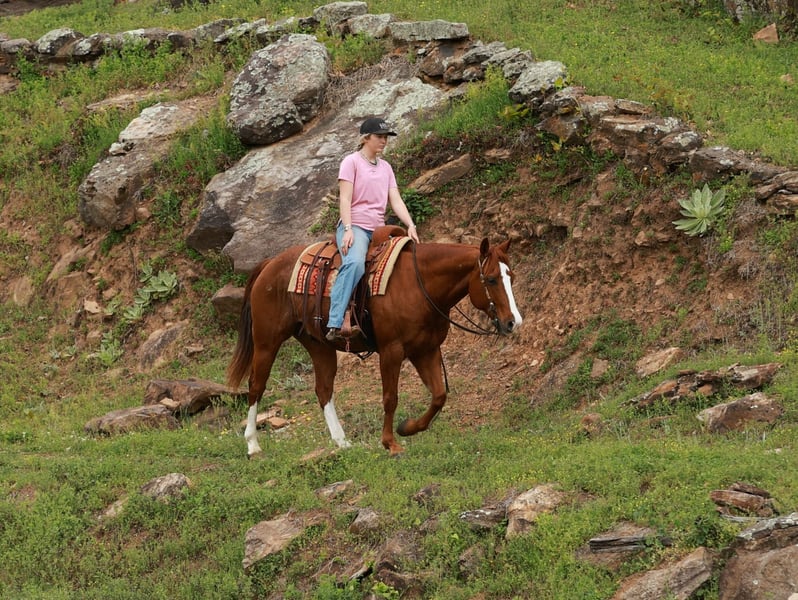 Birdie, yegua de 13 años, de 1,55 m, semental AQHA color roan rojo