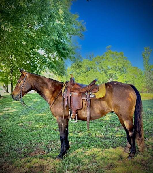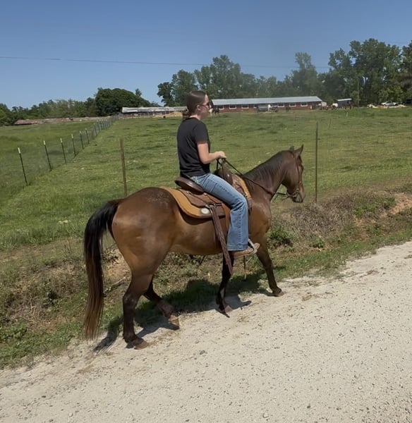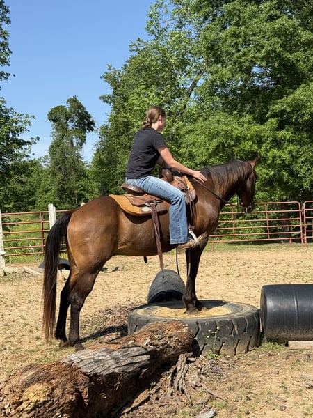 "AVAILABLE ON ONLINE HORSE AUCTION AT www DOT MagicHorseAuction DOT com BIDDING OPEN NOW thru TUESDAY | MAY 13th - BUY IT NOW AVAILABLE! *Final price will be determined on auction site* CONSIGNOR CONTACT INFO: Southern Performance Horses 706-963-9251 LOCATION: Carnesville, GA Todd Everyone needs a gelding like Todd in their barn this boy is priceless! Todd is gentle, sweet and fun. Todd is a 13 year old Quarter Horse gelding standing 14.3 hands. Trails are a blast with Todd he’s a trail blazer alone or in a group he will follow or lead the herd or stay in the back with the slower group. We have taken Todd over bridges, through water, over logs, on top of tires and scary obstacles. Playing in the arena Todd is fun he rides English, western and bareback! He could give basic w/t/c lessons or walk around leisurely over obstacles etc. Todd is not fazed by buses (see video), cars, bikes, deer, birds flying up out of high grass, flags, barking dogs and he is excellent with horns blowing even standing right next to a loud air horn he doesn’t blink an eye. Todd is excellent in the cross ties and stands great for grooming, tacking up, bathing, farrier care and he will also tie to a trailer or picket line without problems. Todd loads and unloads quietly every time. This boy has lived barefoot and with shoes and he does excellent either way! Make Todd your next fun and sweet obstacle, 4H, trail or just a basic pleasure horse that is super versatile and doesn’t mind new situations while riding. Todd can take a joke without issues, he turns out great alone or with others and respects all fencing! This sweet boy has seen his fair share of fun shows, state parks trail riding, wagon trains and back yard pleasure riding and no matter the location or situations he’s up for a safe fun ride. Feel free to reach out about shipping or with any further questions. We are here to answer any and all questions to make sure he’s the perfect fit for your situation. We also have many shippers we could recommend to help get Todd to his new family!