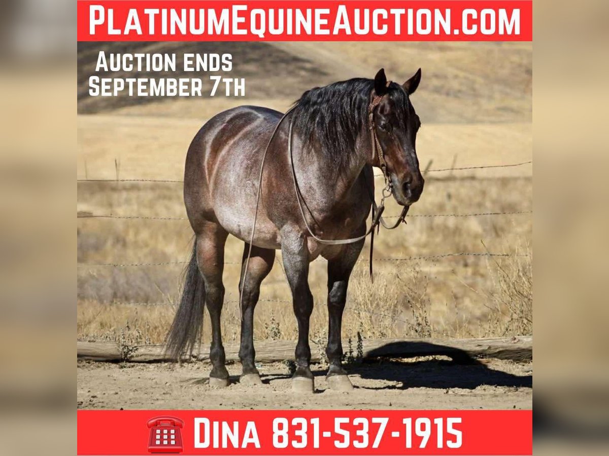 ONLINE AUCTION Place your bids at www.PlatinumEquineAuction.com Starting Bid $3500 Auction ends September 7th, 2025 Need a new saddle? Check out White Rock Saddles on our website or Facebook Buddy is a Beautiful blue/bay roan Saint! If you’ve been searching for a horse that’s as close to bombproof as they come, meet Buddy—the kind of gelding you can trust with absolutely anyone in the saddle. At 13 years old and 14.3 hands (tall and wide), this beautiful roan saint is steady, safe, and unflappable in every situation; from tarps, flags, bridges, pool noodles, bouncy balls, traffic, bicycles, barking dogs, or noisy town commotion—nothing rattles his quiet, gentle mind. Buddy is the horse you climb on when you want zero surprises and total peace of mind, the one that makes every rider—from green to seasoned—feel like they belong in the saddle. He lopes off soft, stays collected, neck reins, and carries himself at that perfect, easy pace that makes every ride comfortable. On the ground he’s just as reliable—tying, hauling, clipping, bathing, and standing for the farrier without a single fuss. He’s the same horse every day, alone or in a group, in a stall or pasture, always kind and mannerly, always safe and forgiving. And when the work calls, Buddy is no stranger to earning his keep—he’s gathered cattle, checked fences, roped, and stood solid in the herd with that same calm, willing try he gives in everything he does. Buddy isn’t just another gelding—he’s the kind of partner that turns ordinary days into the rides you’ll measure all the others by. Located in Paicines, CA. If you have any questions call Dina with Longhorn Ranch 831-537-1915. ONLINE AUCTION Place your bids at www.PlatinumEquineAuction.com Starting Bid $3500 Auction ends September 7th, 2025 Need a new saddle? Check out White Rock Saddles on our website or Facebook