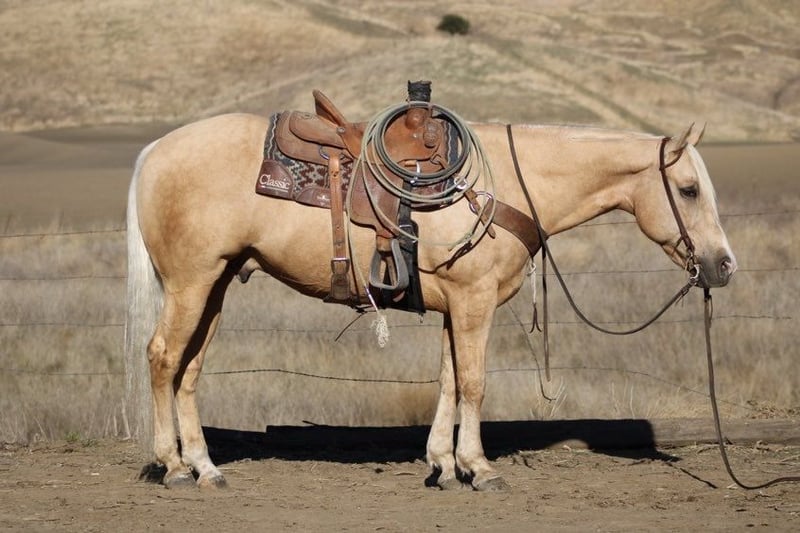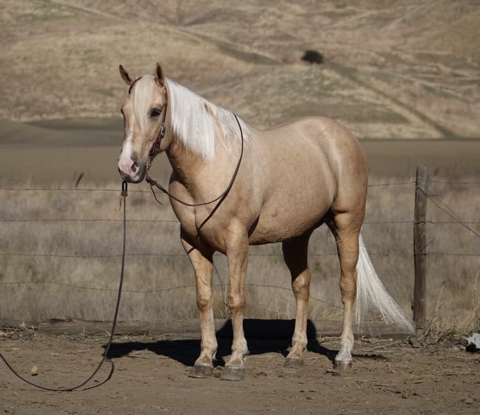 ONLINE AUCTION Place your bids at www.PlatinumEquineAuction.com Starting Bid $3500 Auction ends January 5th, 2024 Need a new saddle? Check out White Rock Saddles on our website or Facebook! Start 2025 out right with this 12-year-old stunning palomino gelding who embodies kindness and calmness in every stride. Standing at a sturdy 15 hands, he boasts an eye-catching sheen that glimmers like sunlight filtering through leaves. His disposition is matched only by his unmatched versatility; whether you’re navigating bustling streets with friends or savoring peaceful moments on scenic trails, unwavering confidence makes him the ultimate companion. This equine marvel has tackled countless obstacles deep waters, narrow paths lined with trees, and wildlife encounters all with gentle assurance as if they were mere bumps along the way. He maneuvers through swinging balls and flying tarps and shrugs off distractions like cars or even semis honking as if they were just another day at work. He is a good ranch horse to gather on and has branded cattle he’s is always ready to work. Professionally trained in the arena, he showcases flawless circles paired with smooth transitions that glide effortlessly into motion a true testament to his grace. Cody proves time and again that he’s not just any horse; he is an extraordinary boy capable of nurturing confidence in those lucky enough to ride him. Polite during vet visits and great for the farrier. He loads and hauls with ease ties well and easy to tacks up. Cody loves ranch life and thrives out on the trails. Cody enjoys being out in a pasture but will stall as well and really enjoys turnouts. He loads and hauls well. Cody is one of those horses that truly likes having a serine setting he truly enjoys the quiet life. He is a horse that likes ranch work. Cody has been great here on the ranch and he will enjoy continuing the ranch and trails with his new family. Cody is suited for intermediate beginners to seasoned riders he is a great choice for a knowledgeable horse family. Please contact Longhorn Ranch located in Paicines, CA to come meet Cody call Dina @ 831-537-1915. ONLINE AUCTION Place your bids at www.PlatinumEquineAuction.com Starting Bid $3500 Auction ends January 5th, 2024 Need a new saddle? Check out White Rock Saddles on our website or Facebook!