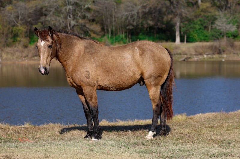 ⚜️𝐓𝐇𝐄 𝓗𝓮𝓻𝓲𝓽𝓪𝓰𝓮 𝐖𝐢𝐧𝐭𝐞𝐫 𝓒𝓵𝓪𝓼𝓼𝓲𝓬⚜️ Happening now thru MONDAY | DECEMBER 29th - Available EXCLUSIVELY on HorseBid's website! For more details and to register visit: www.Horsebid.com CONSIGNOR CONTACT: MM Ranch 469-318-1902 LOCATION: Forney, TX BREED: Quarter Horse REGISTERED: No COLOR: Buckskin HEIGHT: 15.1 AGE: 13 GENDER: Gelding This is the horse version of John Dutton off Yellowstone. So we named him after him. He is so unbelievably kind, soft eyed, straight to the point, no nonsense type of gelding. The kind that is reliable, steady, and seasoned. And he is right in the sweet spot of his life. He is ranch branded and tear branded. So we know he is a the perfect age of 13. He will still last a lifetime. Dutton has lived the real deal outdoor ranch life. He came off a 30,000 acre ranch in south Texas where he spent his whole life working for a living. He is a been there done that type because he has literally been there and done everything. He has been ridden across mountain ranges, hunted off of, and has packed gear through the great backcountry. (You can shoot a gun off his back.) He’s seasoned on week-long camping trips and knows how to travel big country with confidence and sure footedness. He crosses water, logs, bridges, brush, and terrain of every kind like he’s done it a thousand times—which he essentially has. Where most horses spook or hesitate around traffic, busy roads, trains, crowds of people, Dutton doesn’t even blink an eye at it. First time he ever seen a train, he stood right bedside it and wasn’t bothered by it. This gelding is as solid in town as he is on the trails. Ride him right down the street with cars buzzing past, trucks rolling by, and everyday commotion with confidence knowing he will not spook. He’s been down Main Street, through neighborhoods, and into busy areas without a single worry. Dutton has been around more cattle in his lifetime than you can imagine. He is a solid tired and true ranch horse. So if you want to rope or move your cattle around the ranch. Or let your kids learn to work cows and be safe while doing so. He is fun and easy to ride. That old fashioned broke type. You can ride him with a string around his neck. He is light and responsive. Absolutely does everything you ask him to do without hesitation. Dutton is an in-your-pocket, meet-you-at-the-gate kind of gelding. He’s soft, gentle, and genuinely enjoys people. Saddle him cold, saddle him warm, saddle him after time off—he stays quiet and honest. Rides bareback. He rides in a halter, hackamore, or bit, it doesn’t matter to him. Even if you are a complete beginner, you can ride him and enjoy him. Absolutely safe with no bad habits whatsoever. I can’t say that enough. It doesn’t matter if you have never owned a horse before. You can learn on this one. You can build your confidence. But if you are an advanced rider looking for safe you can enjoy him too. Stall him or turn him out—either way, he’s content and an easy keeper. Dutton is the full package with the kind of temperament people spend years searching for. If you want a bombproof gelding that the whole family can ride, in the mountains, on the streets, work the ranch, and babysit the kids —this is the one. Horses with this kind of experience and mileage don’t come up for sale often. He is up to date vaccinations, coggins, worming, feet, etc.. If you need help with transport don’t hesitate to ask. We will help you with that. Call with anymore questions about him.