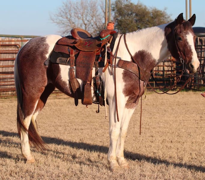 ONLINE AUCTION Place your bids at www.PlatinumEquineAuction.com Starting Bid $3500 Auction ends March 2nd, 2025 Need a new saddle? Check out White Rock Saddles on our website or Facebook! Miss Pie is an 13 year old grade mare. She stands at 15.1hh tall. She has the most precious face with the prettiest, gentle and kind eye. This sweet mare has been used for almost anything you can think of. She is an excellent trail horse! She will gladly climb up or down anything that you point her nose towards. Pie will happily go through any body of water without missing a beat. Pie is not spooky on the trails and can handle any situation that you might encounter, whether that be wildlife, fallen trees, ditches, or treacherous terrain. She is a great leader, but also has no issues falling behind in the back if you want her too. She is calm and sure footed! Pie has been hauled out to town and to rodeos with many distractions and crowds! Pie is a breeze to catch and will come up to you anytime she sees you at the gate. She will load in any trailer without any fuss. Pie is the perfect addition to any barn. He has such a sweet disposition and loves attention and affection. Located in Lipan, TX. We can help arrange hauling anywhere in the US, Hawaii or Canada! Please call or text Makenna Cosby 830-491-8866. ONLINE AUCTION Place your bids at www.PlatinumEquineAuction.com Starting Bid $3500 Auction ends March 2nd, 2025 Need a new saddle? Check out White Rock Saddles on our website or Facebook!