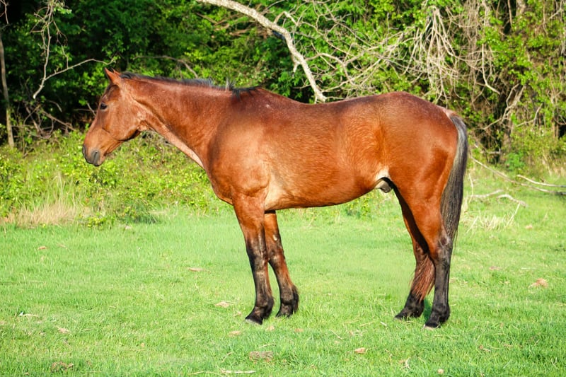 Caballo de senderismo y diversión confiable y alegre, de 14 años, potro de color bay roan, de raza Q