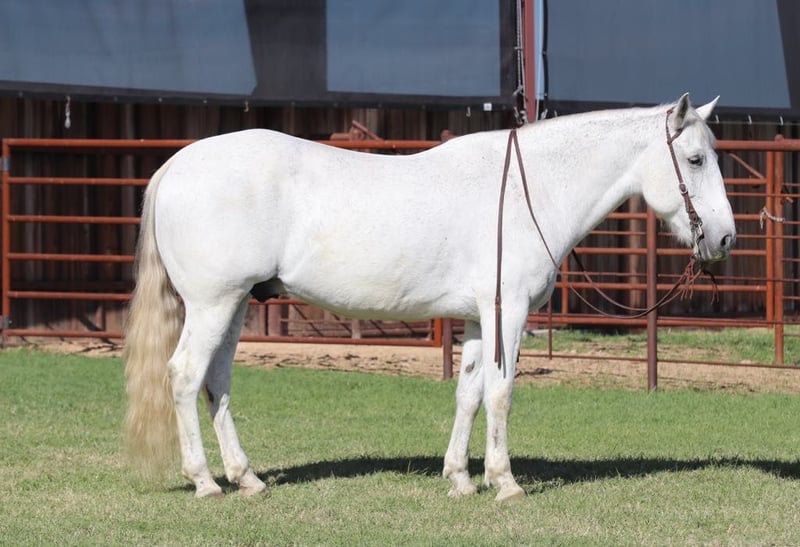 ONLINE AUCTION Place your bids at www.PlatinumEquineAuction.com Starting Bid $3500 Auction ends April 13th, 2025 Need a new saddle? Check out White Rock Saddles on our website or Facebook! This classy guy is just as pretty as he is smart. Caesar is quiet, gentle and easy to be around. Standing at 15.2 hands and 13 years old, grade. Caesar can be rode everyday, he is naturally athletic, he loves to go and wants to please. You can let him sit and pull him out to take on a stroll down the highway with your favorite dog by your side. He will be the same honest guy every time. Caesar excels out in the country, crosses through lakes, and rivers. Climbs or squeezes wherever you point him. Covers miles and happy to do it with you! He walks, trots, and lopes off with ease. He also rides collected and with buttons if you want! Finished head horse, been rode by a 6+. Has plenty of run and rates good. He can go any direction, your next ranch horse, performance horse, or noble trail steed. Caesar loves pets, snacks, bubble bathes and going places! Loads and unloads in anything. Hauls quiet, with geldings or mares, big or small. He hauls like a dream. He has four solid black feet. He is tough! Caesar stands tied all day, gets fat off anything. Easy keeper! We absolutely encourage any one to come try and see how great he is for yourselves, but we are also able to arrange shipping anywhere from Hawaii to Canada and any state in the U.S. He is located in Lipan Texas Please Call or text A&M Livestock Allen 270-963-5491 for more information. ONLINE AUCTION Place your bids at www.PlatinumEquineAuction.com Starting Bid $3500 Auction ends April 13th, 2025 Need a new saddle? Check out White Rock Saddles on our website or Facebook!