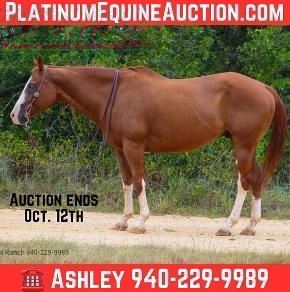 ONLINE AUCTION Place your bids at www.PlatinumEquineAuction.com Starting Bid $3500 Auction ends October 12th, 2025 Need a new saddle? Check out White Rock Saddles on our website or Facebook Zippos Crash aka “Bubbles” 2012 AQHA Gelding • By Master Zippo Bubbles is the ultimate all-around gelding – the kind that doesn’t come along often. He has proven himself time and again in multiple arenas and continues to show why he’s a true one in a million horse. Show Record & Accolades • 2023 NTHSRA Rodeo Queen Horse – countless parades, appearances, grand entries, and public outings • 2023 NTHSRA Goat Tying Finals Qualifier • Current Leader in the local Buckle Series in both Western and English divisions • Points & Money Earner in Ranch Horse Versatility • High Point & Buckle Winner in: • Western Pleasure • Hunter Under Saddle • Horsemanship • Equitation • Western Riding • Trail Experience & Versatility • Competed successfully in Western, English, Ranch Horse Versatility, Barrels, and Goat Tying • Rodeo Queen mount with the look and style for public appearances • Has gathered and sorted cattle, & tracks the dummy • Reliable and safe out on the trails. Safe around deer, pigs, traffic, sirens. • Suitable for multiple riders and events – an ideal family, show, or high school rodeo partner. Additional Highlights • Sound, barefoot, and no maintenance needed • Teeth done this month – UTD on all Vet Care • Owned and loved since 2016 – my personal go-to horse Bubbles is the horse that can truly do it all – from the show pen to the rodeo arena to the trails. Whether you’re looking for a versatile competitor or a reliable partner, he’s ready to step into your program and continue his winning career. Located in Stephenville, TX Test Rides Welcome! Contact Ashley Fox 940-229-9989 with any questions. ONLINE AUCTION Place your bids at www.PlatinumEquineAuction.com Starting Bid $3500 Auction ends October 12th, 2025 Need a new saddle? Check out White Rock Saddles on our website or Facebook
