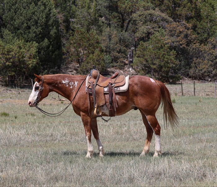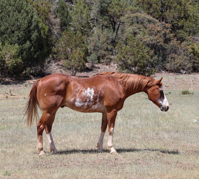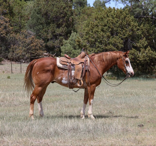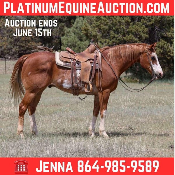 ONLINE AUCTION Place your bids at www.PlatinumEquineAuction.com Starting Bid $3500 Auction ends June 15th, 2025 Need a new saddle? Check out White Rock Saddles on our website or Facebook! Blaze is a 13 year old grade gelding standing 14.3hh. This jaw-dropping gelding is just as gentle as he is handsome!! Whether you’re looking for a sweetheart to mosey on down the trail with or a smooth ride in the arena, Blaze is the gelding for you! We’ve taken Blaze on countless trails in numerous types of country and he takes great care of his rider every single time. Whether you ride out from your backyard or trailer to a new area, Blaze will be the same ride. He is always eager and excited to explore! Whether it’s fallen logs, rushing creeks, steep hills, slippery rock, crazy traffic, speeding dirt bikes, or running dogs; you name it and Blaze will be unphased by it! He is also as surefooted and steady as can be. This gelding isn’t just a blast to hit the trails on, he’s just as fun in the arena! He will walk, trot, and lope both ways like a gem. Blaze is easy to catch, groom, saddle, bridle, bathe, shoe, load, and he gets along great with other horses. He will come with a clean health & coggins! We offer nation wide shipping from Cottonwood, AZ.! Please don’t hesitate to call Jenna Edwards 864–985-9589 with any questions. ONLINE AUCTION Place your bids at www.PlatinumEquineAuction.com Starting Bid $3500 Auction ends June 15th, 2025 Need a new saddle? Check out White Rock Saddles on our website or Facebook!