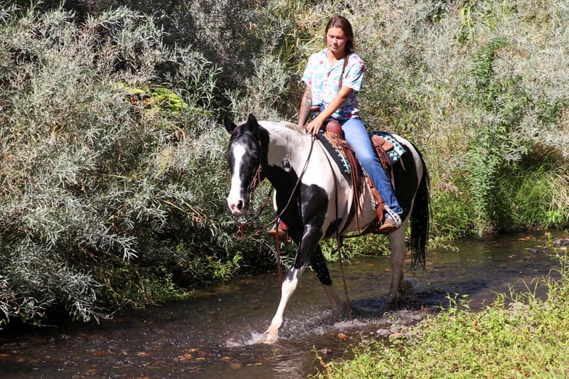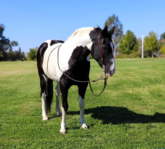 ONLINE AUCTION Place your bids at www.PlatinumEquineAuction.com Starting Bid $3500 Auction ends October 20th, 2024 Need a new saddle? Check out White Rock Saddles on our website or Facebook! Introducing The Ultimate Trail Warrior!!! Meet Domino, the 13 year old 14.2 hand as cute as a button and sweet as a peach! He’s the perfect trail horse that everyone dreams of having in their barn. Domino is fearless and reliable on the trails—point him at any obstacle, and he’ll confidently cross it, whether it’s a swaying bridge, logs, creeks, or steep hills. He’s a joy to ride, with a quick, ground-covering walk that keeps up with any horse. Domino is super sure-footed and careful, especially on tricky terrain. He takes his time on hills, moving steadily with your hand down on his neck, never rushing. He’s been exposed to all sorts of obstacles, from pool noodles to teeter-totter bridges, and he’s unfazed by anything you throw at him. Not only is he a trail star, but Domino also shines in the arena. He knows his leads, has a solid stop, spins, side passes, and responds lightly to your cues. He can collect his head when asked and is barefoot, doing wonderfully without shoes. Domino is easy to handle—he loads, ties, bathes, stands to be saddled, and is great for the farrier. This sweet, reliable horse is ready to be your next adventure partner! Please contact Kamryn at KW Ranch 530-852-2032 Located in Pleasant Grove, CA. ONLINE AUCTION Place your bids at www.PlatinumEquineAuction.com Starting Bid $3500 Auction ends October 20th, 2024 Need a new saddle? Check out White Rock Saddles on our website or Facebook!