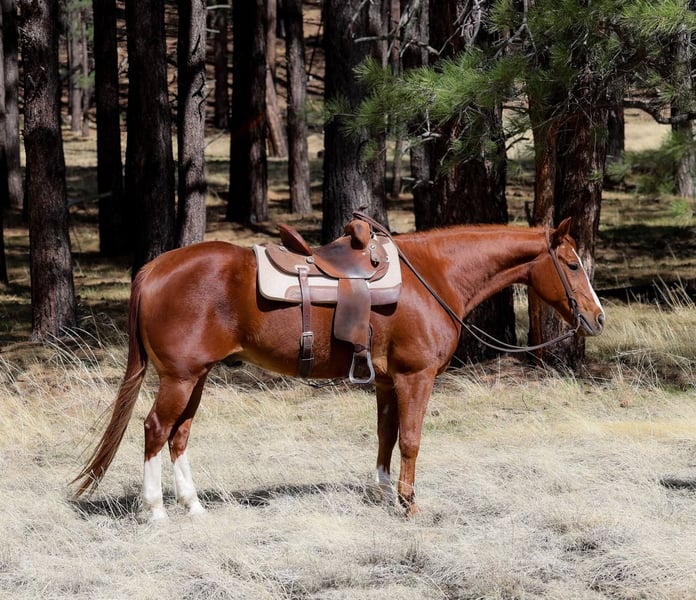 ONLINE AUCTION Place your bids at www.PlatinumEquineAuction.com Starting Bid $3500 Auction ends May 4th, 2025 Need a new saddle? Check out White Rock Saddles on our website or Facebook! Berrie is a 14 year old grade gelding and is standing 14.3hh. This striking sorrel is ready to face whatever you throw his way! We have drug calves to the fire on him, ranched in various terrains, checked miles of fence, worked gates and doctored cattle off him! He’s also an absolute gem in the arena! He will walk, trot, and lope both ways like such a gentleman. He moves off your leg, is also so fun bareback or even brideless! If you want a horse you can trust to take you anywhere and allow you to have fun doing anything, this is your guy!! He’s outstanding in town, around busy streets or loud trucks, with dogs, and will gladly take you through any trails you could dream of! He stands perfectly for baths, saddling, shoeing & grooming, loads perfectly and is just an in your pocket sweetie! He will come with a clean coggins & health!! Can help with transport to anywhere in the US! Located in Cottonwood AZ. Contact Jenna Edwards 864-985-9589 with any questions. ONLINE AUCTION Place your bids at www.PlatinumEquineAuction.com Starting Bid $3500 Auction ends May 4th, 2025 Need a new saddle? Check out White Rock Saddles on our website or Facebook!