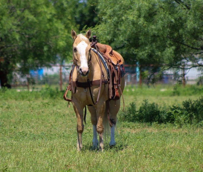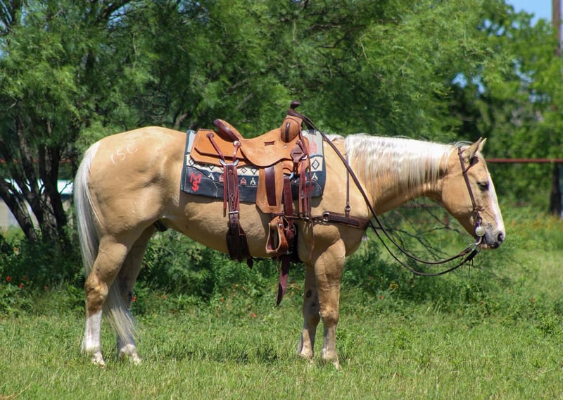 ONLINE AUCTION Place your bids at www.PlatinumEquineAuction.com Starting Bid $3500 Auction ends June 8th, 2025 Need a new saddle? Check out White Rock Saddles on our website or Facebook! Meet Amigo, a fabulous 14-year-old Palomino gelding standing at a friendly 14.3 hands tall! They say blondes have more fun, and Amigo is living proof of that—this guy is an absolute blast to ride and be around! With years of experience under his belt, he’s done a little bit of everything, making him experienced. Don’t let his age fool you; Amigo is a seasoned veteran with plenty of pep in his step! He’s taken part in 4-H shows, both English and Western, and knows his way around the playday events. He’s even tackled cross rail jumps! Amigo is the kind of horse who will go wherever you point him, making him a true “point-and-go” buddy. He’s also been a reliable partner in moving cattle from pasture to pasture and has a lovely running walk that makes covering ground a breeze. Amigo has explored miles and miles of beautiful trails and has enjoyed weekend camping trips at various parks. He’s fearless when it comes to crossing logs, water, and bridges, and he confidently navigates through brush, all while keeping his cool around wildlife like foxes, deer, and elk. Amigo has a delightful short lope that’s just a joy to ride, whether you’re out on the trails or meandering through the pastures. In the arena, he’ll walk, trot, and lope circles with ease, always picking up the correct leads. His neck rein is fantastic, making him easy to handle. He’s friendly and easy to ride, which means you can enjoy every moment in the saddle! This wonderful gelding is great around dogs, kids, and other horses, making him the perfect addition to any family. He’s easy to tack up and bridle, stands patiently for the farrier, loads and unloads off the trailer without any fuss, and stands tied like a champ. If you’re looking for a fun, reliable, and experienced partner to share adventures with, Amigo is your guy! Come meet him and see for yourself just how special he is! If you can’t make it to see him that’s ok because we offer FaceTime showings. If you need help with transport don’t hesitate to ask we have a list of reputable haulers that can get him safely to your doorstep WORLD WIDE including, Alaska , Mexico, Hawaii, Canada and anywhere in between. Call M $ Performance Horses Michelle 661-817-9120 with any questions. Located in Stephenville, TX. ONLINE AUCTION Place your bids at www.PlatinumEquineAuction.com Starting Bid $3500 Auction ends June 8th, 2025 Need a new saddle? Check out White Rock Saddles on our website or Facebook!