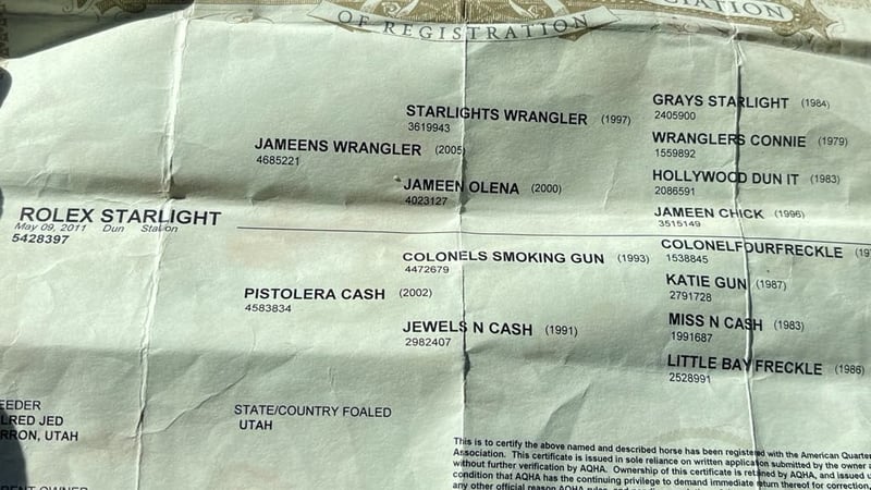 ONLINE-AUKTION Geben Sie Ihre Gebote unter www.PlatinumEquineAuction.com ab. Startgebot $3500 Die Auktion endet am 6. Oktober 2024 Brauchen Sie einen neuen Sattel? Schauen Sie sich White Rock Saddles auf unserer Website oder Facebook an! Rolex Starlight Wir freuen uns, Ihnen unseren neuesten Neuzugang vorstellen zu dürfen, einen atemberaubenden 2011er AQHA-Wallach von 15 Händen. Dieses Pferd ist der Inbegriff von Vielseitigkeit und ist perfekt für jeden, der ein schickes, braves Turnierpferd sucht, das auch sanft und sicher genug für Kinder und Omas zu reiten ist. Dieser Wallach hat nicht nur einen phänomenalen Stammbaum mit Namen wie Gray Starlight, Hollywood Duntit und Colonels Smoking Gun, sondern er hat auch die passenden Fähigkeiten dazu. Er ist nicht nur ein hübsches Gesicht; seine Fähigkeiten sprechen Bände. Er ist super brav und extrem freundlich, was ihn für die ganze Familie geeignet macht. Wenn es ums Reiten geht, glänzt der Wallach in jeder Hinsicht. Sein Lope ist sanft und mühelos, seine Zirkel sind präzise und schön, sein Sliding Stop ist tadellos und seine Spins sind nahtlos. Egal, ob Sie ihn auf die Ranch oder in den Schauring mitnehmen wollen, er wird in beiden Bereichen mit Leichtigkeit brillieren. Rolex ist überlegen auf Kühen Branding ist seine zweite Natur, aus der Box heraus verhält er sich wie ein wahrer Gentleman. Rolex ist ein echter Showstopper. Der Stil dieses Pferdes hebt ihn von anderen ab, es gibt wirklich keinen anderen wie ihn. Er kann überall vorgeführt werden, ohne dass man sich Gedanken über Sicherheit oder Verhaltensprobleme machen muss. Sogar Kinder können ihn auf der Straße reiten, da er mühelos mit Autos, Zügen und Lastwagen umgehen kann. Er kann schmale Pfade befahren oder tiefe Flüsse und Baumstämme überqueren, ohne zu zögern, und bleibt dabei ruhig vor Wildtieren. Dieser Wallach ist nicht nur ein außergewöhnliches Reitpferd, sondern hat auch Erfahrung in Ranch-Vielseitigkeitsklassen, Hindernisläufen und Ranch-Rodeos. Er ist wirklich ein Tausendsassa, wenn es um reiterliche Aktivitäten geht. Der Umgang mit diesem Pferd ist ein wahrgewordener Traum. Er bindet an, zieht wie ein Profi, steht für den Hufschmied oder zum Baden bereit und lässt sich sogar von kleinen Kindern ohne Probleme anfassen. Pferde dieses Kalibers gibt es nicht oft; sie sind unersetzliche Juwelen für sich. Wir garantieren Ihnen, dass Rolex Ihr Herz und die Show stehlen wird, wo immer er auftaucht. Egal, ob Sie ihn auf der Weide oder im Stall halten, er passt sich an jede Atmosphäre an. Dieses Pferd ist wirklich einzigartig, und wir sind stolz darauf, es Ihnen präsentieren zu können. Lassen Sie sich diese einmalige Gelegenheit nicht entgehen und lernen Sie diesen tollen Wallach noch heute kennen! Kontaktieren Sie Longhorn Ranch Dina @ 831-537-1915 in Paicines, CA. Wir freuen uns darauf, Ihnen alles über Rolex zu erzählen! ONLINE-AUKTION Geben Sie Ihre Gebote unter www.PlatinumEquineAuction.com ab. Startgebot $3500 Die Auktion endet am 6. Oktober 2024 Brauchen Sie einen neuen Sattel? Schauen Sie sich White Rock Saddles auf unserer Website oder Facebook an!