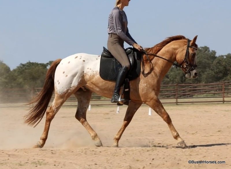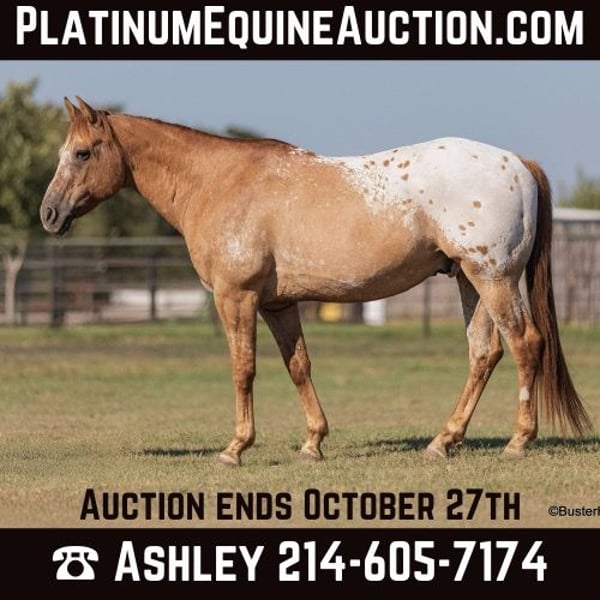 ONLINE AUCTION Place your bids at www.PlatinumEquineAuction.com Starting Bid $3500 Auction ends October 27th, 2024 Need a new saddle? Check out White Rock Saddles on our website or Facebook! “Ace” – 15H, 13 year old dun appaloosa gelding. Ace has been a youth rider’s very first horse for the past 3 years and has literally done it all! He is all business – but still has a very sweet, kind, and friendly personality. No drama, he has never horsey, never knickers at other horses. He is happy to go out on the trail alone with you, happy to leave the barn, absolutely no gate sourness or goofiness – just a good-ol boy willing to go do whatever and hang out. He is happy to load up and trail ride alone. He has been used for 4-H shows and has been ridden both English and Western. He’s even done gaming and speed events on a lower level – he isn’t fast, but he goes through all the patterns really cute and consistently! He is great on the trail,.has been on lots of different types of trails and terrain. He is awesome in town, really loves exploring all the new places and sites. He is relaxed and very comfortable in any environment you put him in. He will really stand out in English tack! He will be the only one that looks like him, but still looks very classy and elegant. He is a cute mover, can do all the entry level dressage test well, as well Jump up to 2’3/2’6 comfortably. He has been to the entry level Hunter/Jumper shows as well as competed at the 4-H shows. If you are looking for a fun all-around horse for the whole family to enjoy or a personal horse for yourself or your kiddo, don’t look past Ace! He will definitely be the only one around that looks like him! To see additional videos, go to our website: BusterHorses.com or our Facebook page Buster Horses. Please call anytime for more information at Buster Horses Ashley 214-605-7174 Ace is located in Weatherford, TX – one hour from Dallas / Fort Worth International Airport. He is an easy day trip or fun overnight trip to come try out, from anywhere! We are experienced, knowledgeable sellers, and we can help with quickly arranging affordable shipping to any buyer’s location – we have experience shipping worldwide – including regularly to Hawaii, Canada, Mexico, Europe, and South Africa. ONLINE AUCTION Place your bids at www.PlatinumEquineAuction.com Starting Bid $3500 Auction ends October 27th, 2024 Need a new saddle? Check out White Rock Saddles on our website or Facebook!
